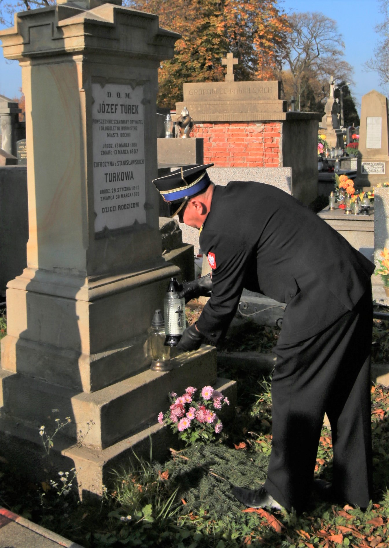 W hołdzie strażakom, którzy odeszli na wieczną służbę w Dzień Zaduszny 2 listopada 2022 r. pełniący obowiązki Komendanta Powiatowego Państwowej Straży Pożarnej w Bochni st. bryg. Piotr Gadowski zapalił znicze na grobach: druha Józefa Pletty, współzałożyciela Straży Pożarnej w Bochni w 1869 r.; druha Józefa Turka, współzałożyciela Straży Pożarnej w Bochni, wieloletniego Burmistrza Miasta Bochni; druha Jana Kuca, sekretarza Zarządu Głównego Związku Straży Pożarnych RP, V-ce Prezesa Zarządu Wojewódzkiego Związku Straży Pożarnych woj. Krakowskiego, Naczelnika III Okręgu, nieetatowego Komendanta zawodowego Miejskiego Pogotowia Straży Pożarnej Miasta Bochni oraz st. kpt. Andrzeja Kęcika, Dowódcy JRG, który zginął w 1993 r. Kierownictwo i funkcjonariusze Komendy Powiatowej Państwowej Straży Pożarnej w Bochni od wielu lat oddają hołd zmarłym strażakom, którzy w ponad 150- letniej jej historii zasłużyli się dla rozwoju ochrony przeciwpożarowej na terenie miasta Bochni, regionu i kraju.
