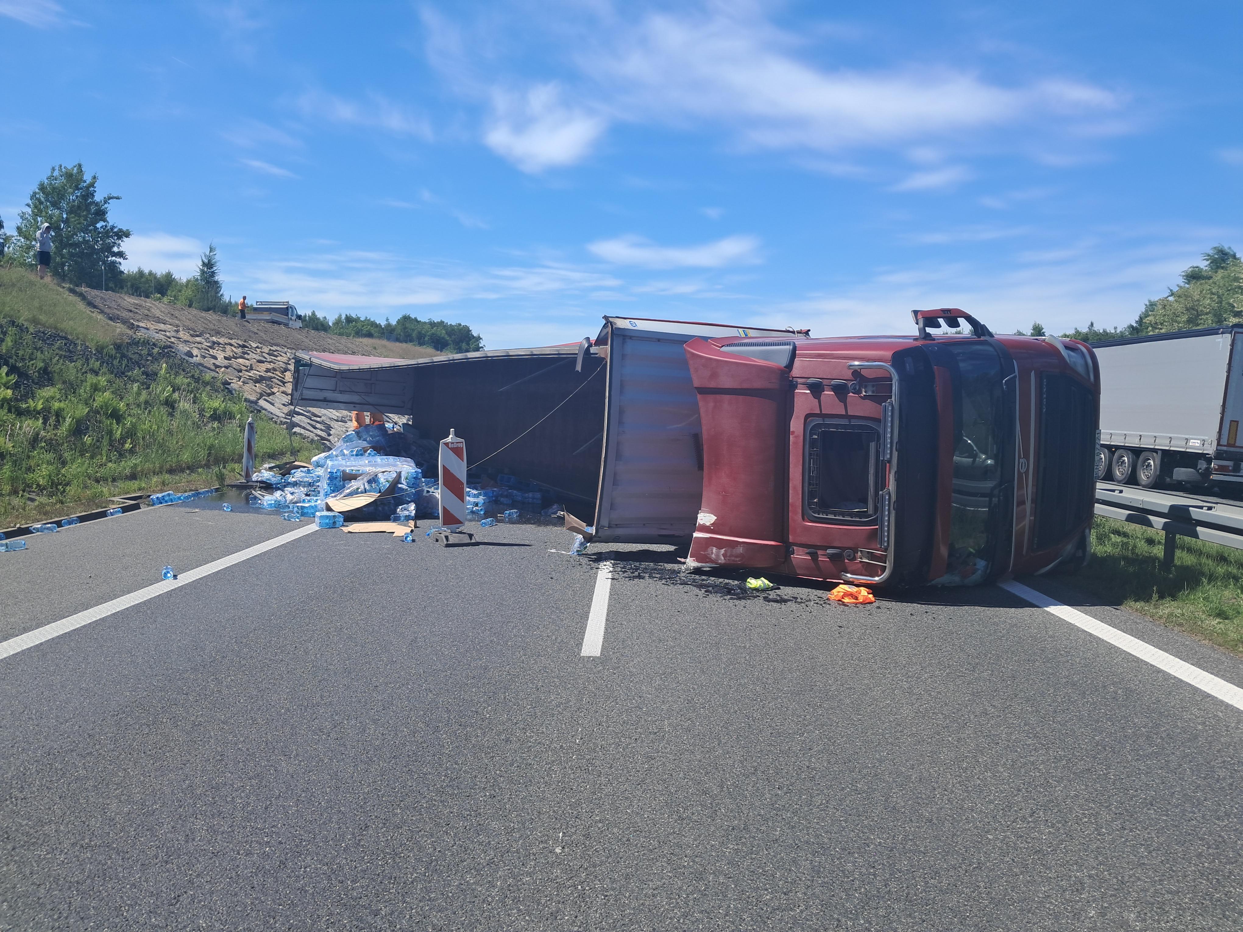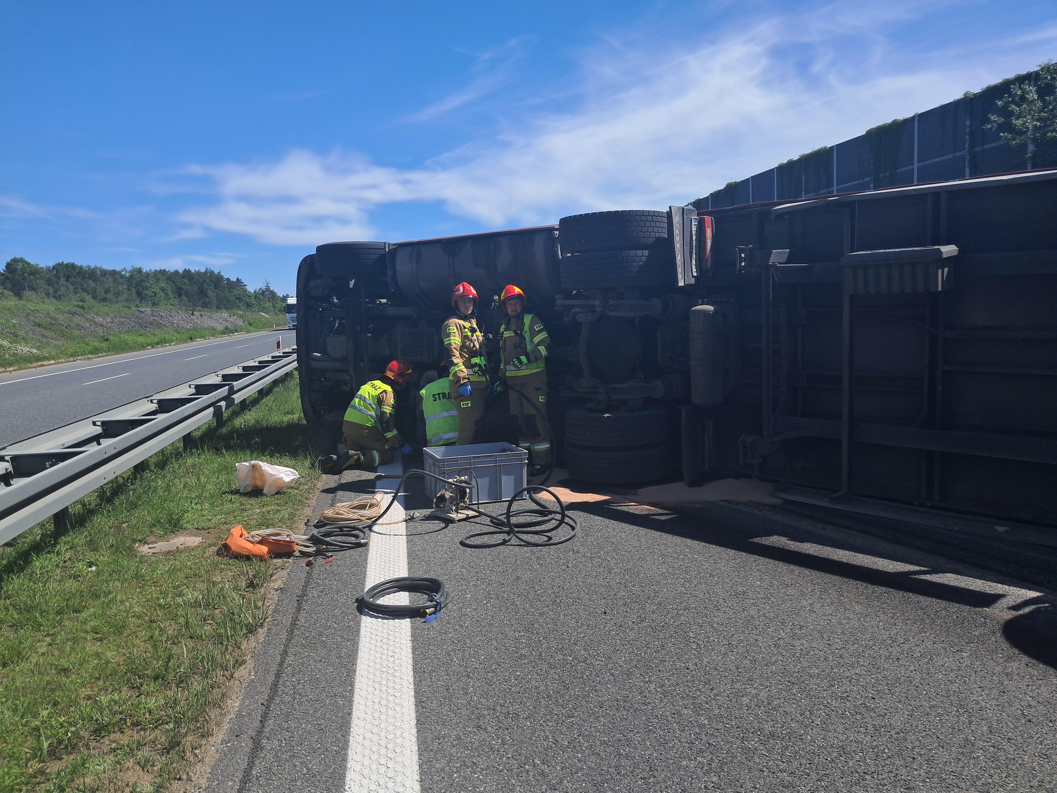 Wypadek pojazdu ciężarowego z naczepą na autostradzie A4 w miejscowości Borek