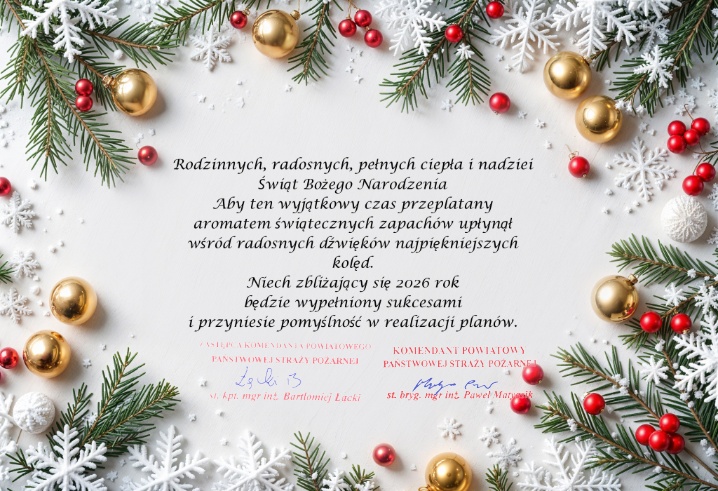 Życzenia Komendanta Powiatowego PSP w Bochni na Boże Narodzenie 23.12.2025 Zdjęcia (1) Pokaż zdjęcie 1 z galerii.