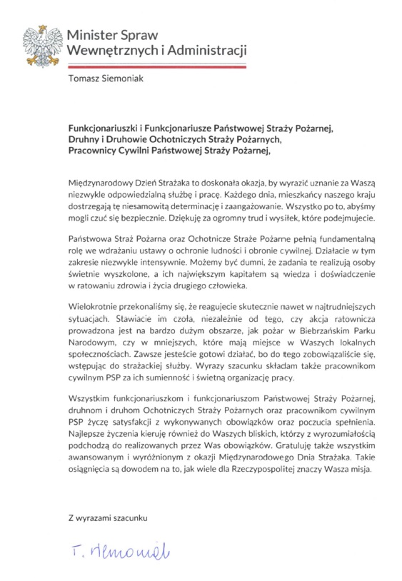 Życzenia z okazji Dnia Strażaka 04.05.2025 Życzenia Ministra Spraw Wewnętrznych i Administracji, Komendanta Głównego Państwowej Straży Pożarnej, Małopolskiego Komendanta Wojewódzkiego Państwowej Straży Pożarnej z okazji Dnia Strażaka. Zdjęcia (3) Pokaż zdjęcie 1 z galerii. Pokaż zdjęcie 2 z galerii. Pokaż zdjęcie 3 z galerii.