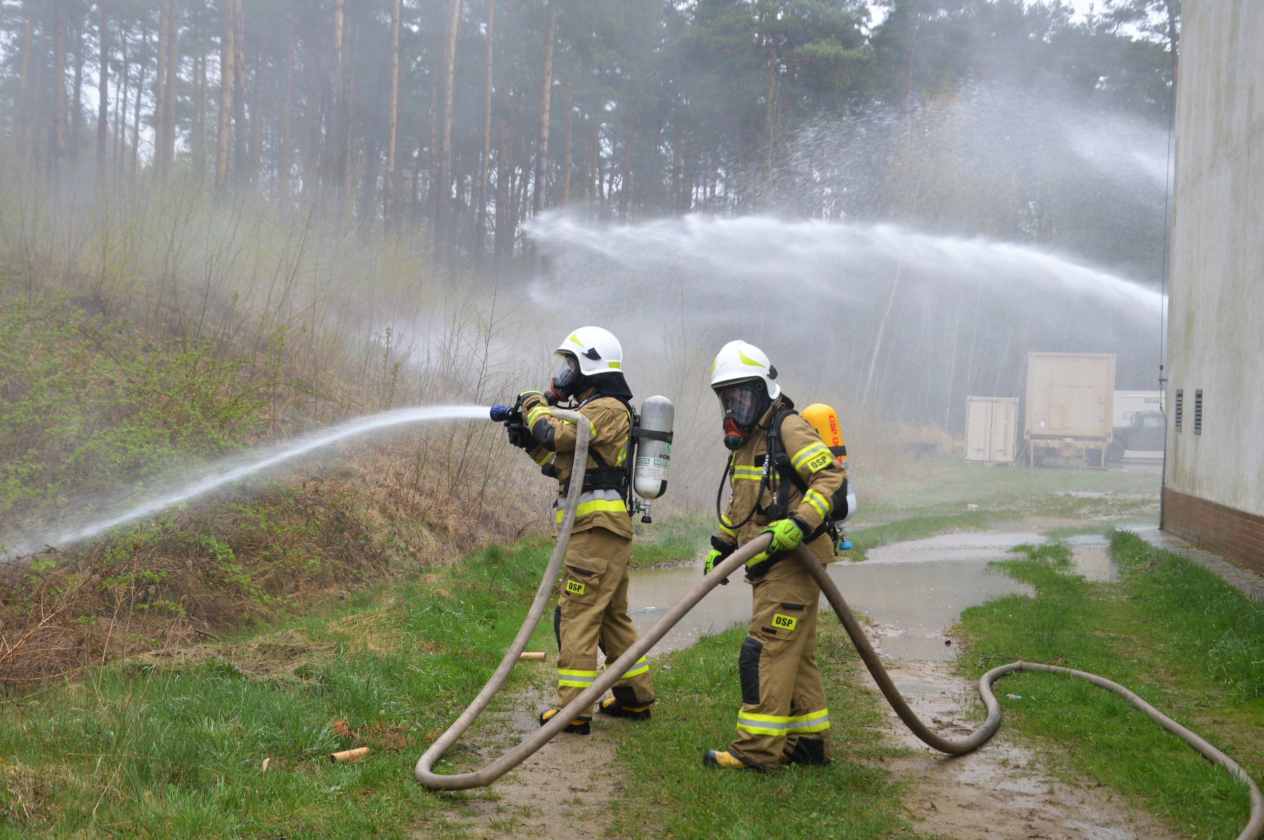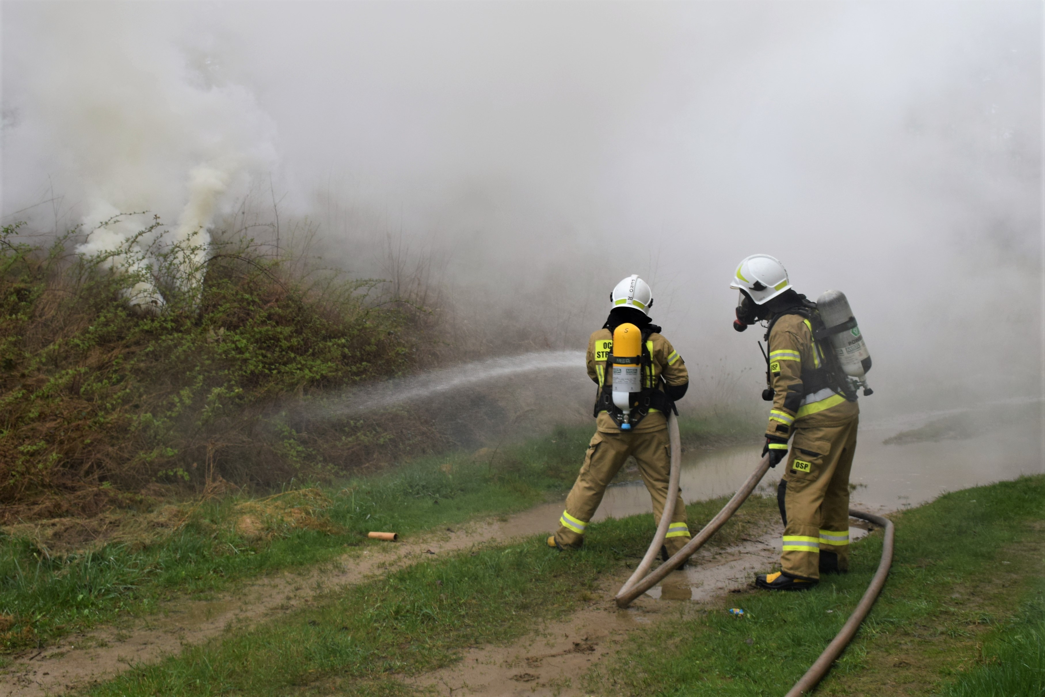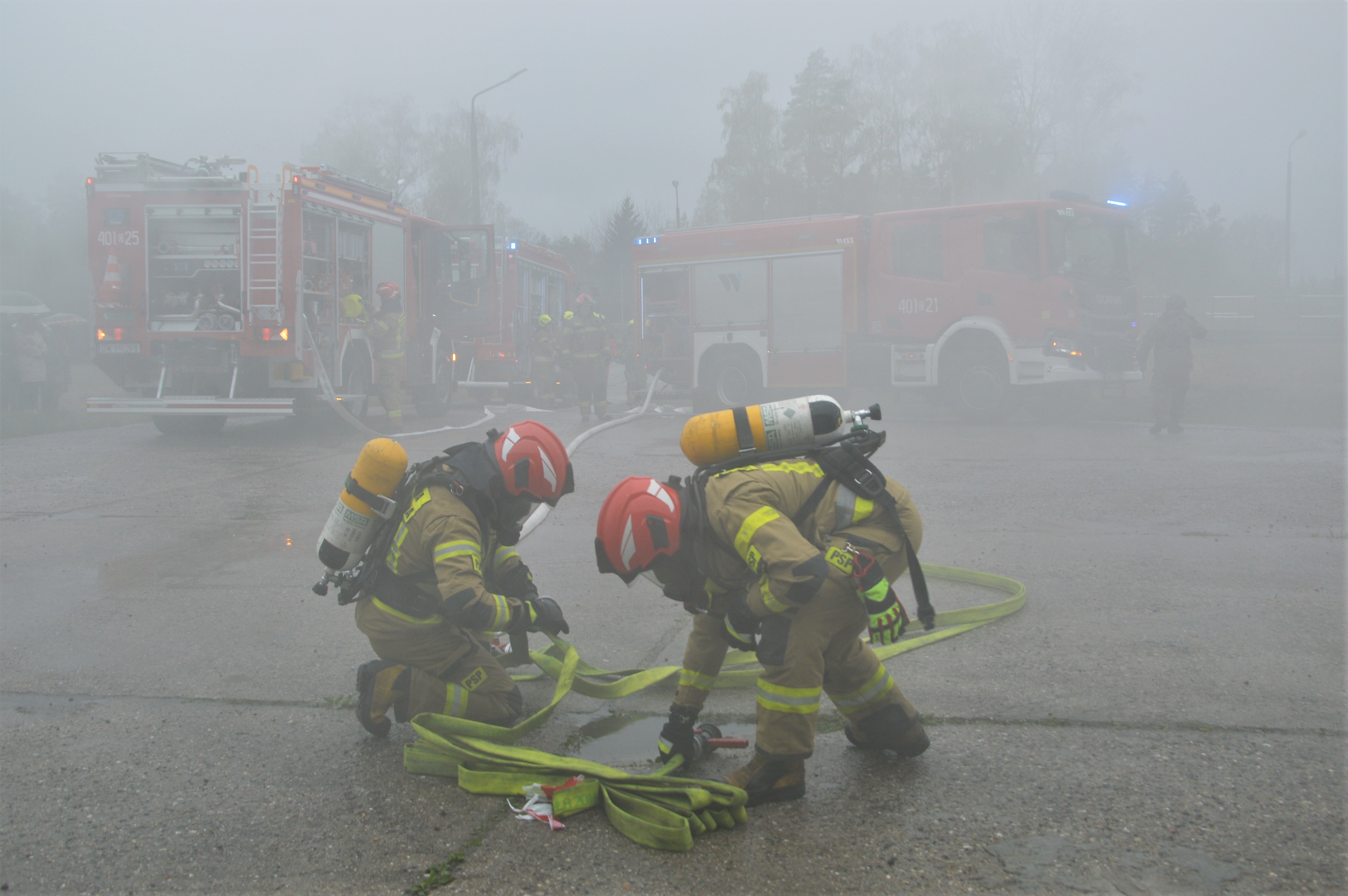 Ćwiczenia bolesławieckich strażaków na terenie jednostki wojskowej