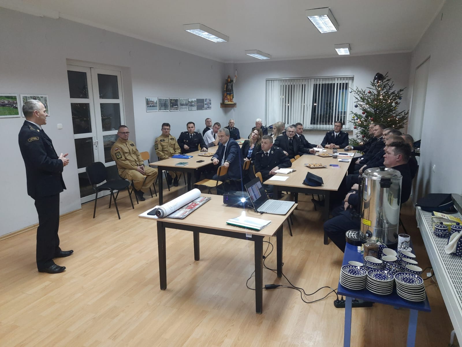 Kończący się rok 2023 oraz potrzeba ciągłego doskonalenia, był powodem spotkania, które 14 grudnia 2023 roku odbyło się w Komendzie Powiatowej PSP w Bolesławcu. W spotkaniu, oprócz kadry kierowniczej komendy, uczestniczyli Prezesi Zarządów jednostek ochotniczych straży pożarnych powiatu bolesławieckiego, lub osoby ich zastępujące. W toku spotkania dokonano wstępnego podsumowania prowadzonych działań z zakresu ochrony przeciwpożarowej w bieżącym roku oraz omówiono plan pracy na 2024 r. Ponadto zapoznano druhów z planem szkoleń, wnioskami i uwagami z zrealizowanych ćwiczeń oraz przypomniano o podstawowych zasadach bhp, szczególnie związanymi z poruszaniem się pojazdami uprzywilejowanymi w warunkach zimowych. Przedstawiono również zasady i warunki zakupów pojazdów pożarniczych i rozdziału dotacji.
