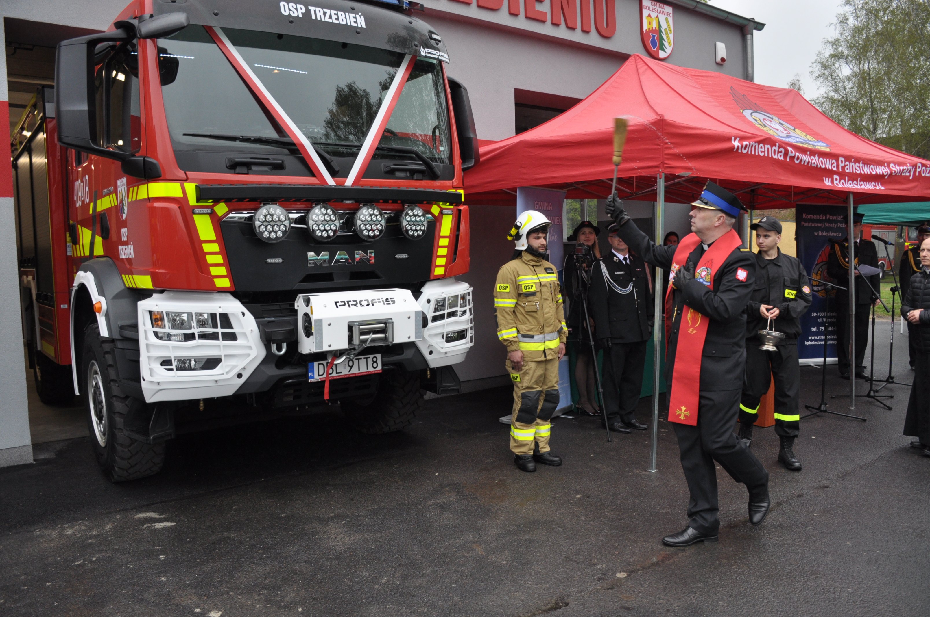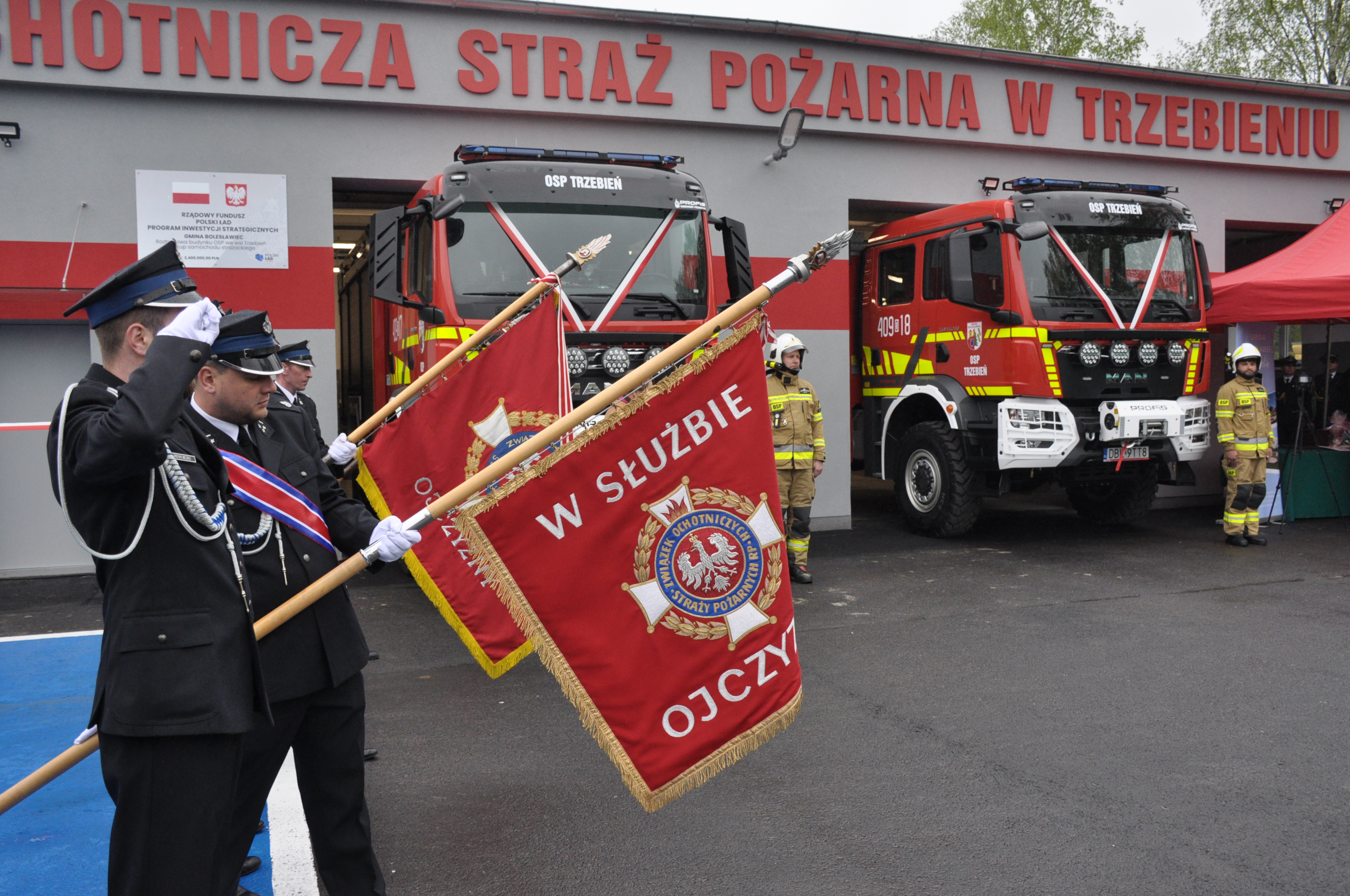 W sobotę 6 maja 2023 roku o godzinie 1200, na placu przed remizą Ochotniczej Straży Pożarnej w Trzebieniu (gmina Bolesławiec) polową Mszą Świętą w intencji strażaków, której przewodniczyli ks. Artur Szela kapelan dolnośląskich strażaków i ks. Jacek Makówka proboszcz parafii w Trzebieniu, rozpoczęły się obchody „Dnia Strażaka 2023 w powiecie bolesławieckim”. Miejsce uroczystego apelu nie zostało przypadkowo wybrane. Nie często zdarza się, by przy okazji wręczania odznaczeń i awansów, móc jednocześnie uroczyście przekazać do użytkowania przez OSP dwóch nowych średnich samochodów ratowniczo – gaśniczych i rozbudowanej remizy strażackiej.