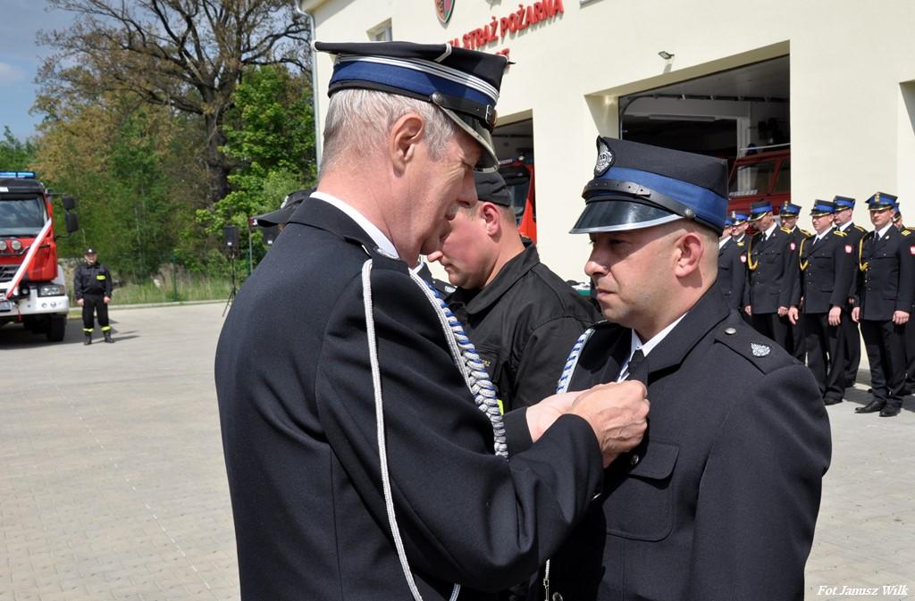 W imieniu Zarządu Wojewódzkiego ZOSP RP dh Ryszard Dąbrowa, w asyście Prezesa Zarządu Oddziału Powiatowego ZSOP dh Stanisława Żółtańskiego, wręczył jeden złoty, 6 srebrnych i 9 brązowych „Medali za zasługi dla pożarnictwa” dla druhów z jednostek OSP powiatu bolesławieckiego.