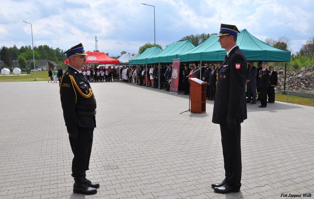 Kulminacyjnym punktem uroczystego apelu było przekazanie do użytkowania i poświęcenie dwóch nowo zakupionych samochodów ratowniczo – gaśniczych dla OSP w Różyńcu i OSP w Wierzbowej oraz odbiór nowej remizy dla OSP w Gromadce.