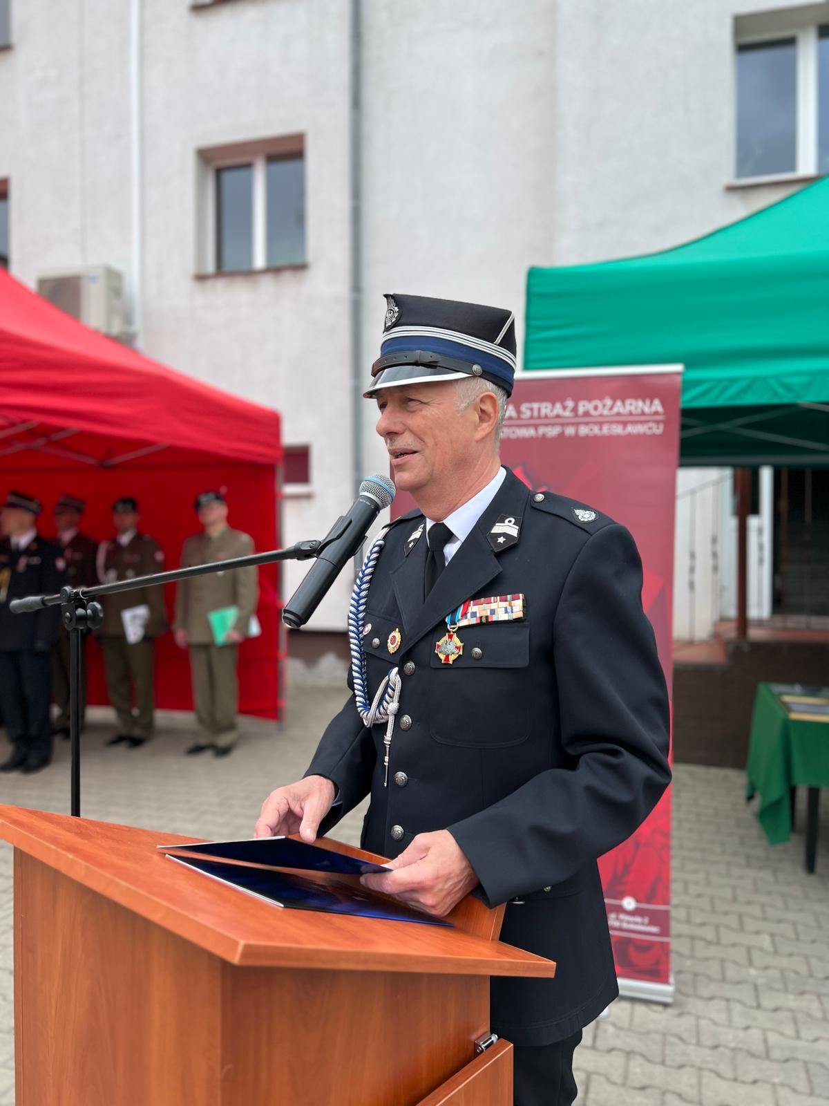 W dniu 22 maja 2025 r. na placu wewnętrznym Komendy Powiatowej PSP w Bolesławcu odbyły się Powiatowe Obchody Dnia Strażaka, w których udział wzięli funkcjonariusze PSP, druhowie OSP z terenu powiatu bolesławieckiego oraz zaproszeni goście.