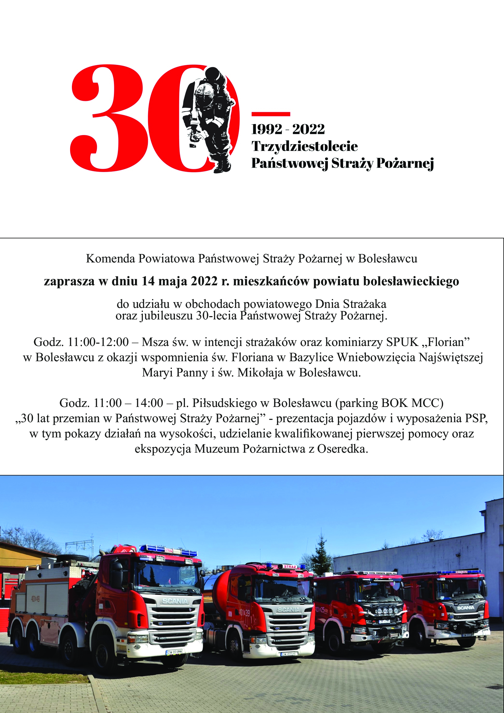 Obchody powiatowe Dnia Strażaka oraz jublieusz 30-lecia Państwowej Straży Pożarnej w Bolesławcu 09.05.2022 Zdjęcia (1) Pokaż zdjęcie 1 z galerii.