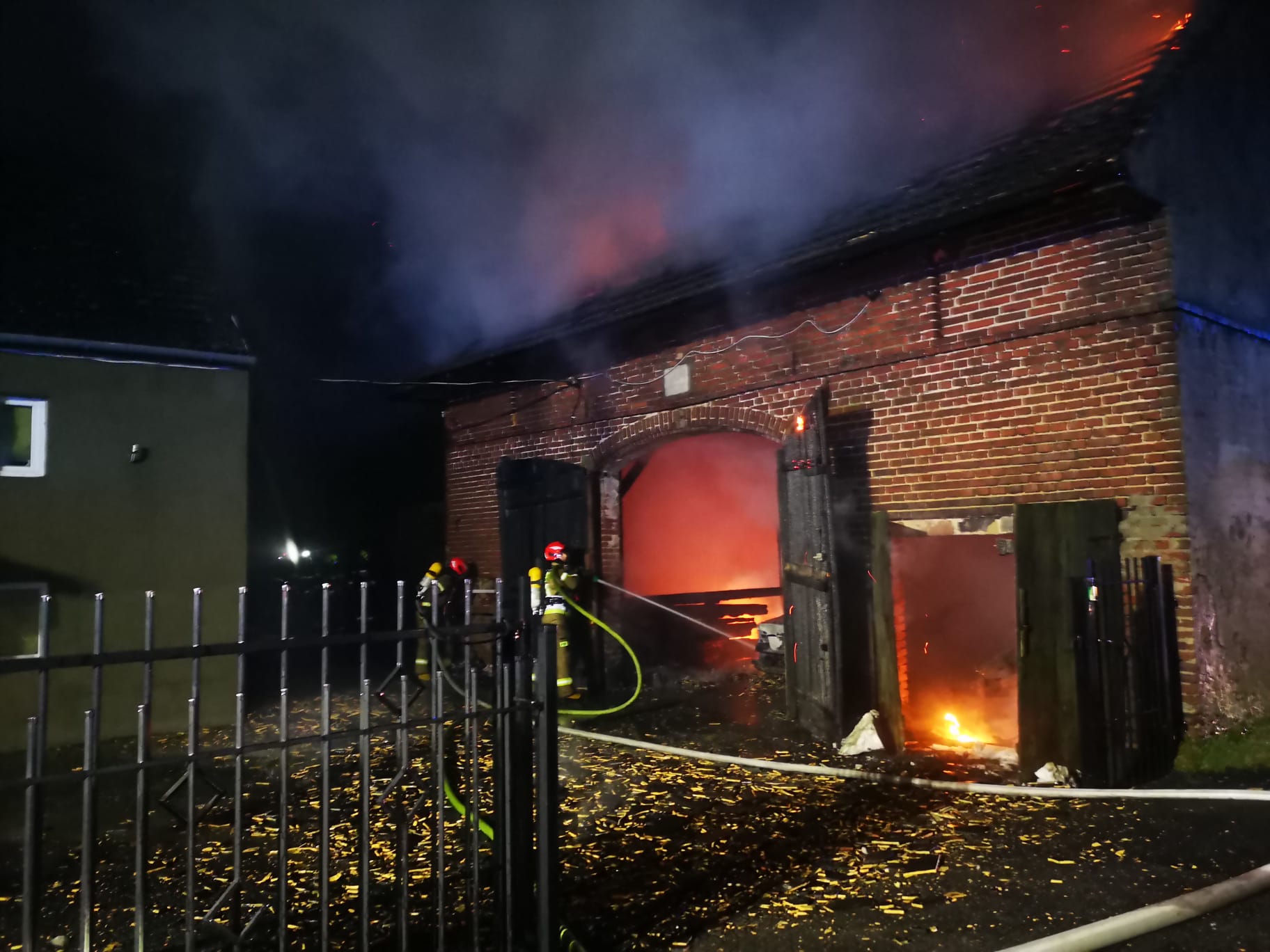 W dniu 24.01.2024 r. o godz. 00:44 do SK KP w Bolesławcu wpłynęło zgłoszenie o pożarze budynku gospodarczego w miejscowości Nowa Wieś. Po przybyciu na miejsce zdarzenia zastępów Jednostek Ochrony Przeciwpożarowej strażacy zastali palący się budynek w całej objętości. Budynek wyposażony był w instalację fotowoltaiczną – właściciel odłączył główny wyłącznik prądu przed przyjazdem zastępów straży pożarnej. Pożar został ugaszony, a następnie dokonano prac rozbiórkowych dachu w celu dotarcia do zarzewi ognia. W zdarzeniu nikt nie ucierpiał. Działania trwały ok. 4 godzin.