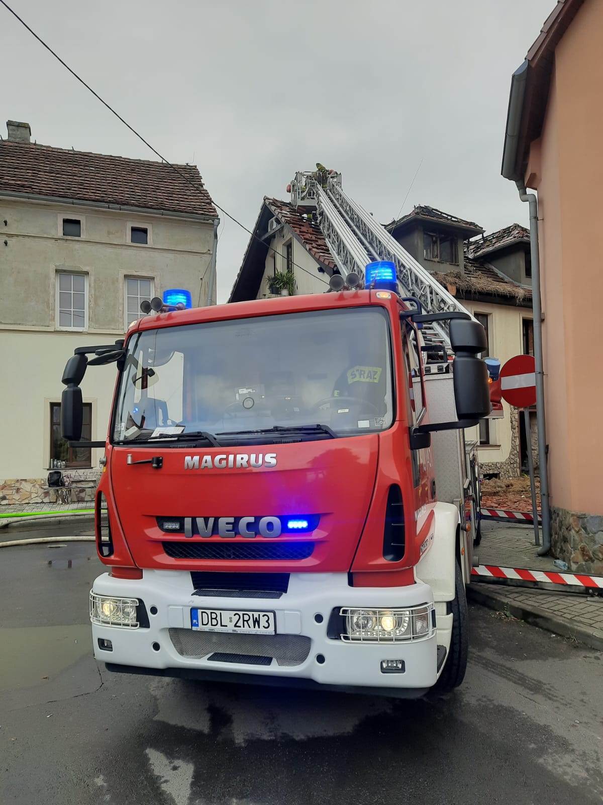 W dniu 16.10.2023 r. o godz. 1:54 do SK KP w Bolesławcu wpłynęło zgłoszenie o pożarze dachu budynku mieszkalnego w miejscowości Nowogrodziec. Po przybyciu na miejsce zdarzenia zastępów Jednostek Ochrony Przeciwpożarowej przystąpiono do gaszenia dachu budynku przy użyciu trzech drabin mechanicznych. Mieszkańcy opuścili obiekt przed przyjazdem zastępów OSP i PSP.