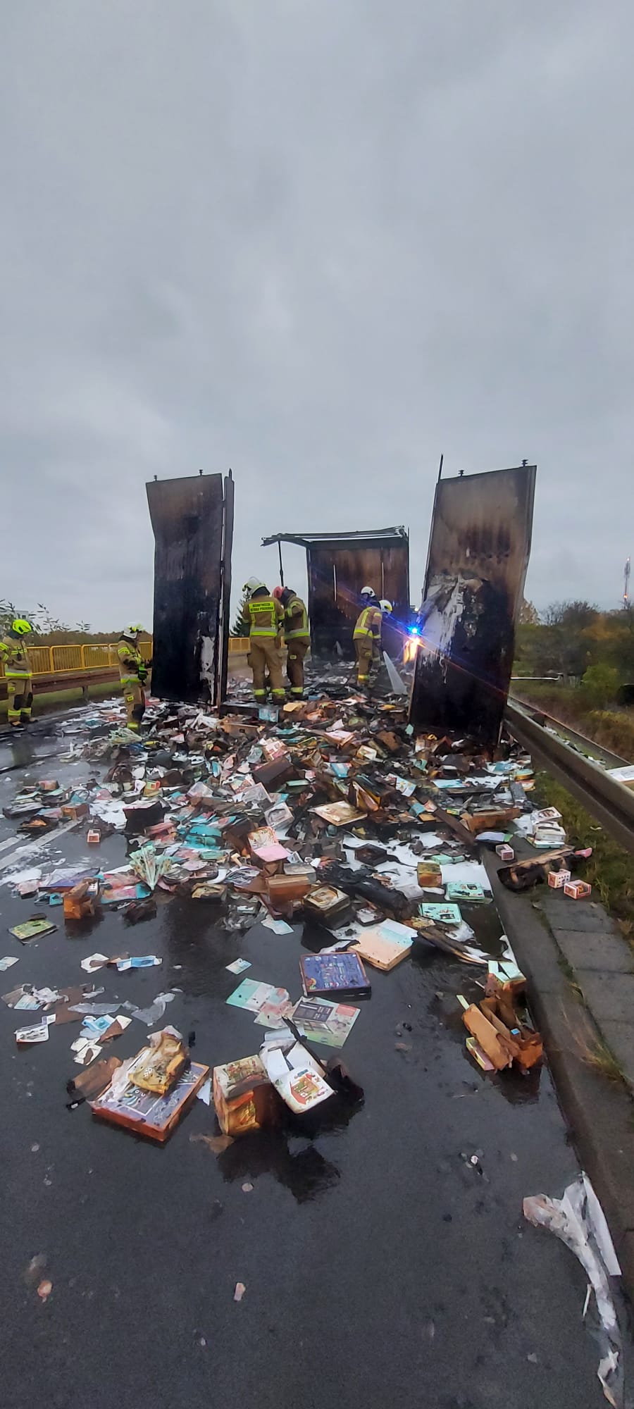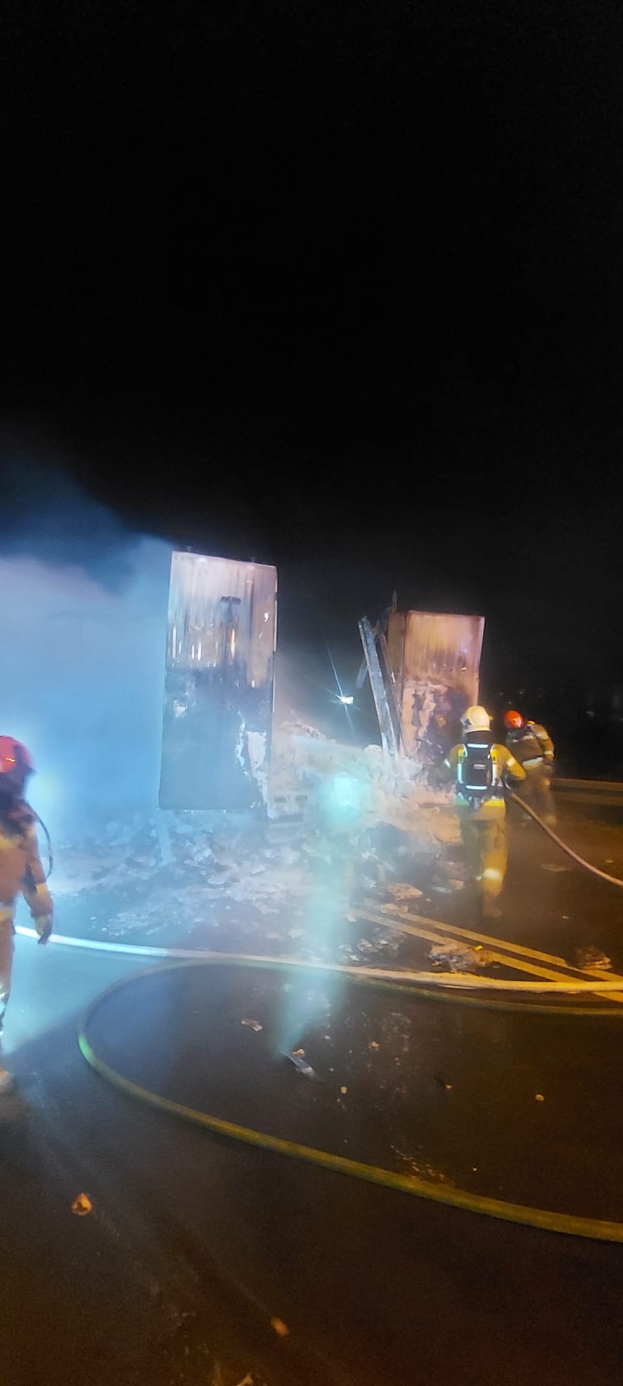 W dniu 17.11.2023 r. o godz. 04:25 do Stanowiska Kierowania Komendanta Powiatowego PSP w Bolesławcu wpłynęło zgłoszenie o pożarze samochodu ciężarowego. Po przyjeździe na miejsce zdarzenia JOP strażacy zastali palącą się w całej objętości naczepę. Kierowca przed przyjazdem zastępów odłączył ciągnik siodłowy od naczepy i ustawił go w bezpiecznej odległości. Na czas prowadzenia działań gaśniczych droga była zablokowana. W pożarze nikt nie ucierpiał. Działania gaśnicze trwały ponad 5 godzin.