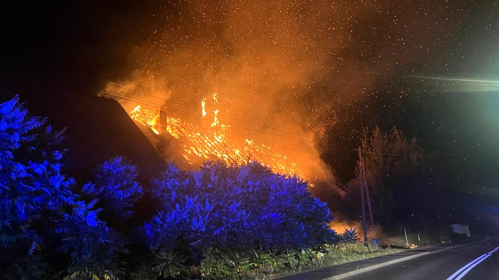W dniu 06.10.2023 r. o godz. 20:21 do Stanowiska Kierowania Komendanta Powiatowego PSP w Bolesławcu wpłynęło zgłoszenie o pożarze opuszczonego budynku w miejscowości Tomaszów Bolesławiecki. Po przyjeździe na miejsce zdarzenia JOP strażacy zastali palący się dach w całej objętości, a kolejne przyległe zabudowania gospodarcze były zagrożone pożarem. Działania gaśnicze prowadzono z dwóch drabin mechanicznych. Silnie wiejący wiatr utrudniał gaszenie pożaru i przenosił iskry na inne zabudowania. W pożarze nikt nie ucierpiał. Działania gaśnicze trwały ponad 11 godzin.
