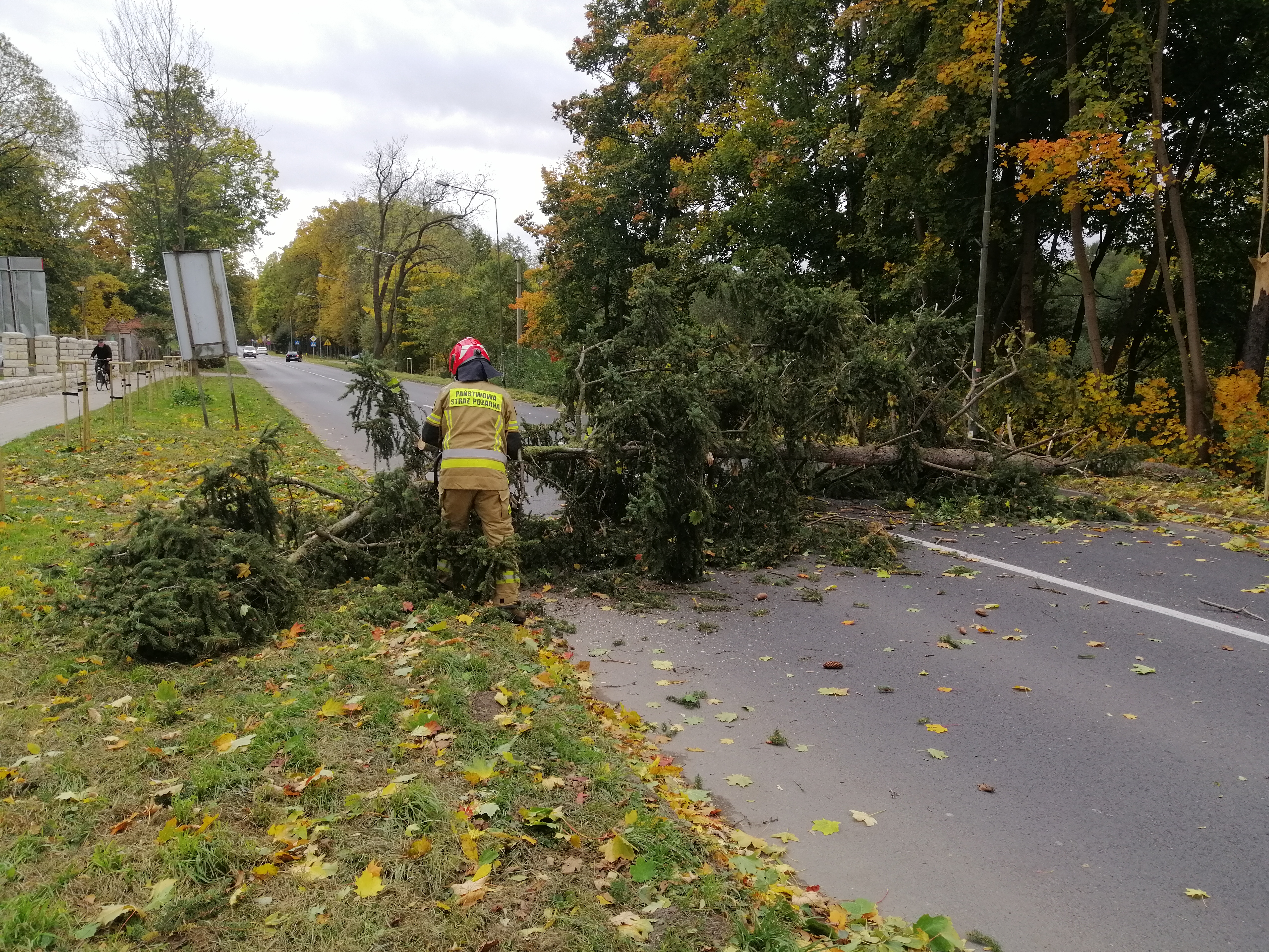 W dniu 21.10.2021 r. na terenie powiatu bolesławieckiego odnotowano ponad 100 interwencji w związku z przejściem silnych wiatrów. W akcji zaangażowane zostały siły strażaków z Państwowej Straży Pożarnej w Bolesławcu oraz jednostki OSP z terenu powiatu bolesławieckiego.