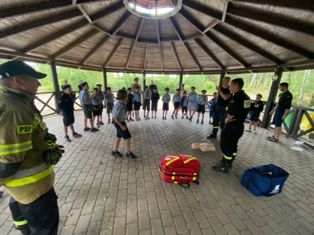 Bezpieczne wakacje to także temat przewodni spotkań z uczestnikami harcerskich obozów pod namiotami. W dniach 8 i 11 lipca 2022 roku bolesławieccy strażacy, wspólnie ze strażakami OSP w Trzebieniu, podczas wizyt w obozach w Trzebieniu Małym i Starej Olesznie, mieli przyjemność przeprowadzenie pogadanek dla harcerzy. Po sprawdzeniu warunków ewakuacji i zabezpieczenia przeciwpożarowego, przeprowadzono szkolenie z zasad alarmowania, prowadzenia ewakuacji jak również udzielania pierwszej pomocy.