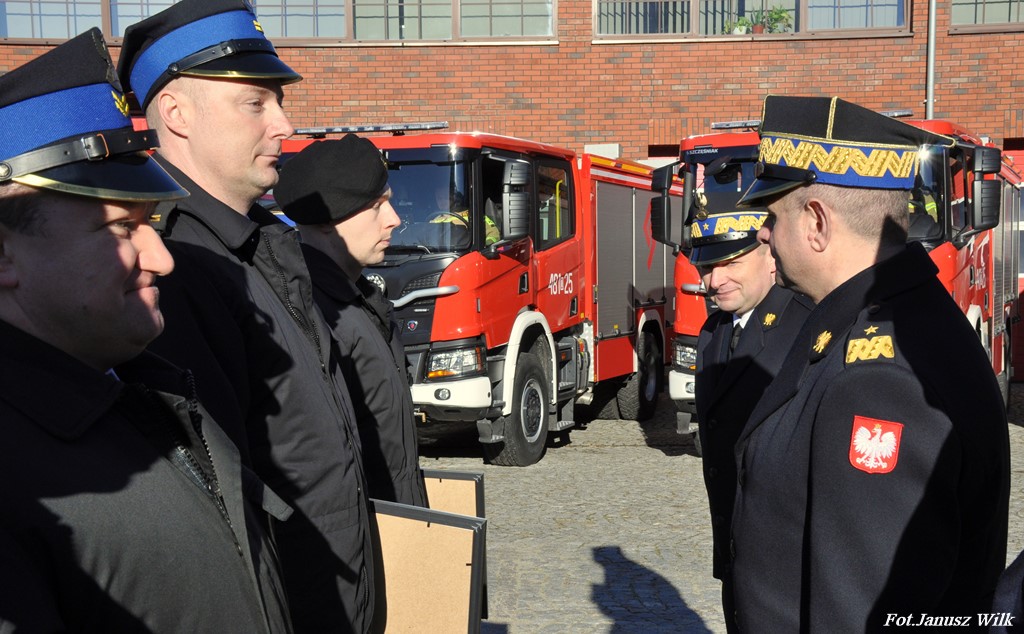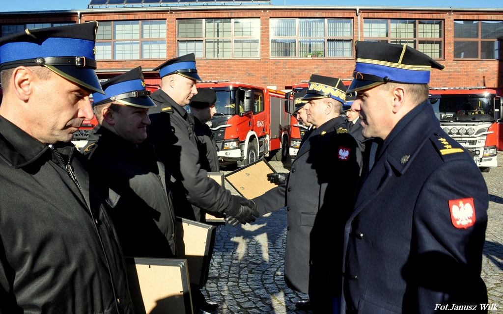 Podczas uroczystej zbiórki w Komendzie Wojewódzkiej Państwowej Staży Pożarnej we Wrocławiu, nadbryg. Adam Konieczny zastępca komendanta głównego PSP, wręczył funkcjonariuszom PSP w Bolesławcu wyróżnienia Komendanta Głównego PSP.