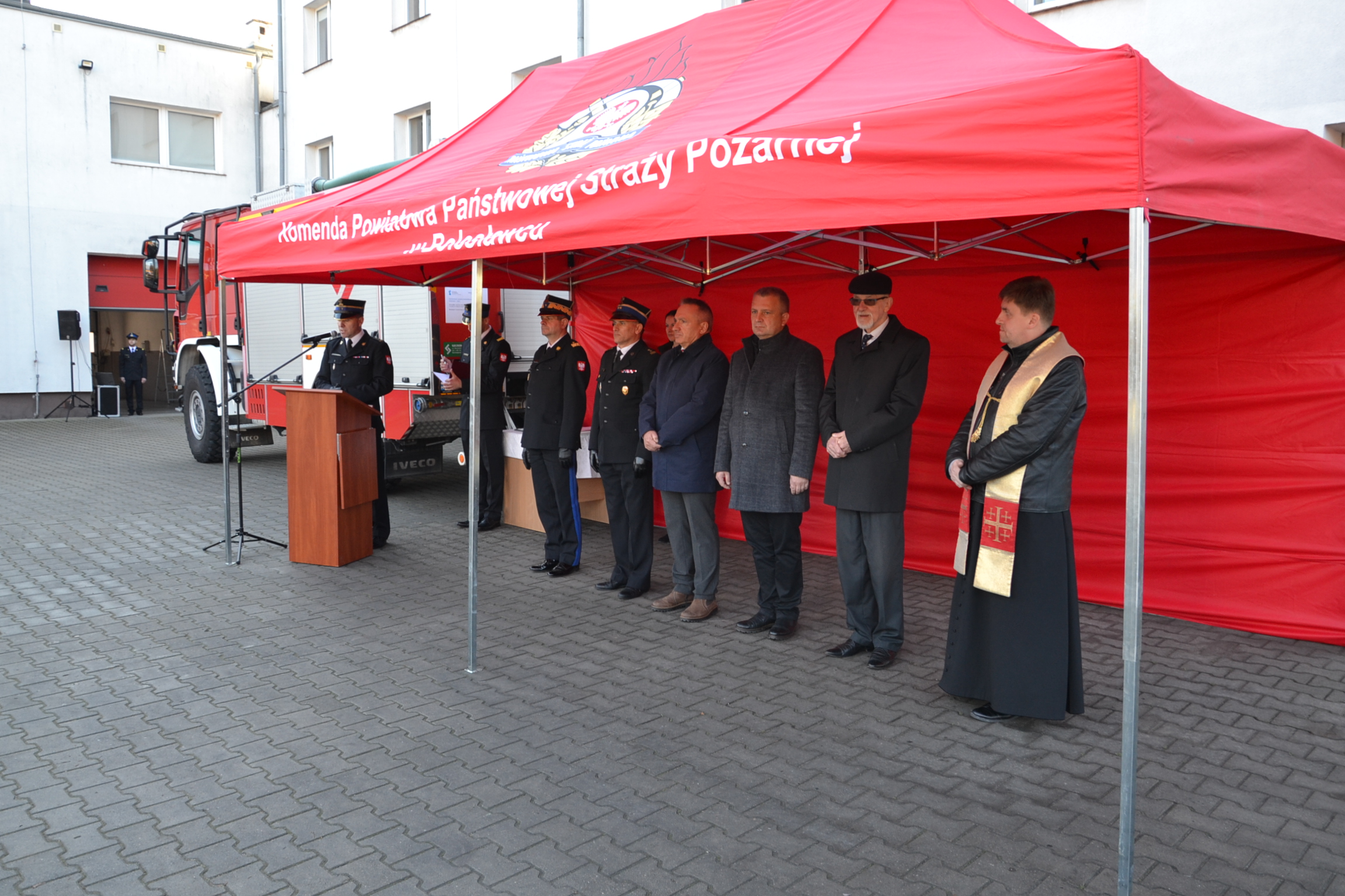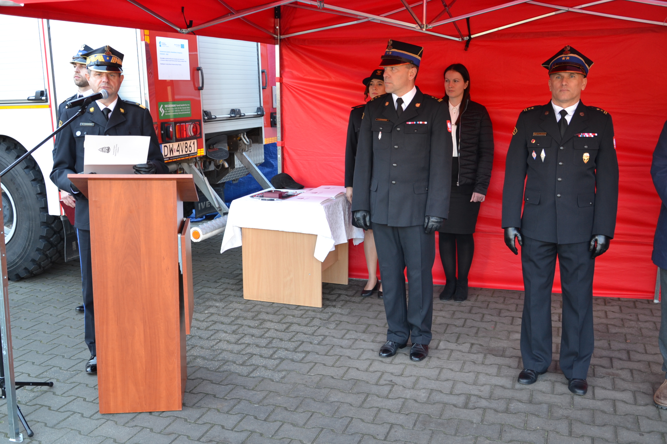 W uroczystości wzięli udział: Dolnośląski Komendant Wojewódzki PSP nadbryg. Marek Kamiński, Komendant Powiatowy PSP bryg. Andrzej Śliwowski, Starosta Bolesławiecki Tomasz Gabrysiak, Prezydent Miasta Bolesławiec Piotr Roman, Wójt Gminy Bolesławiec Andrzej Dutkowski oraz ks. Roman Lubański.