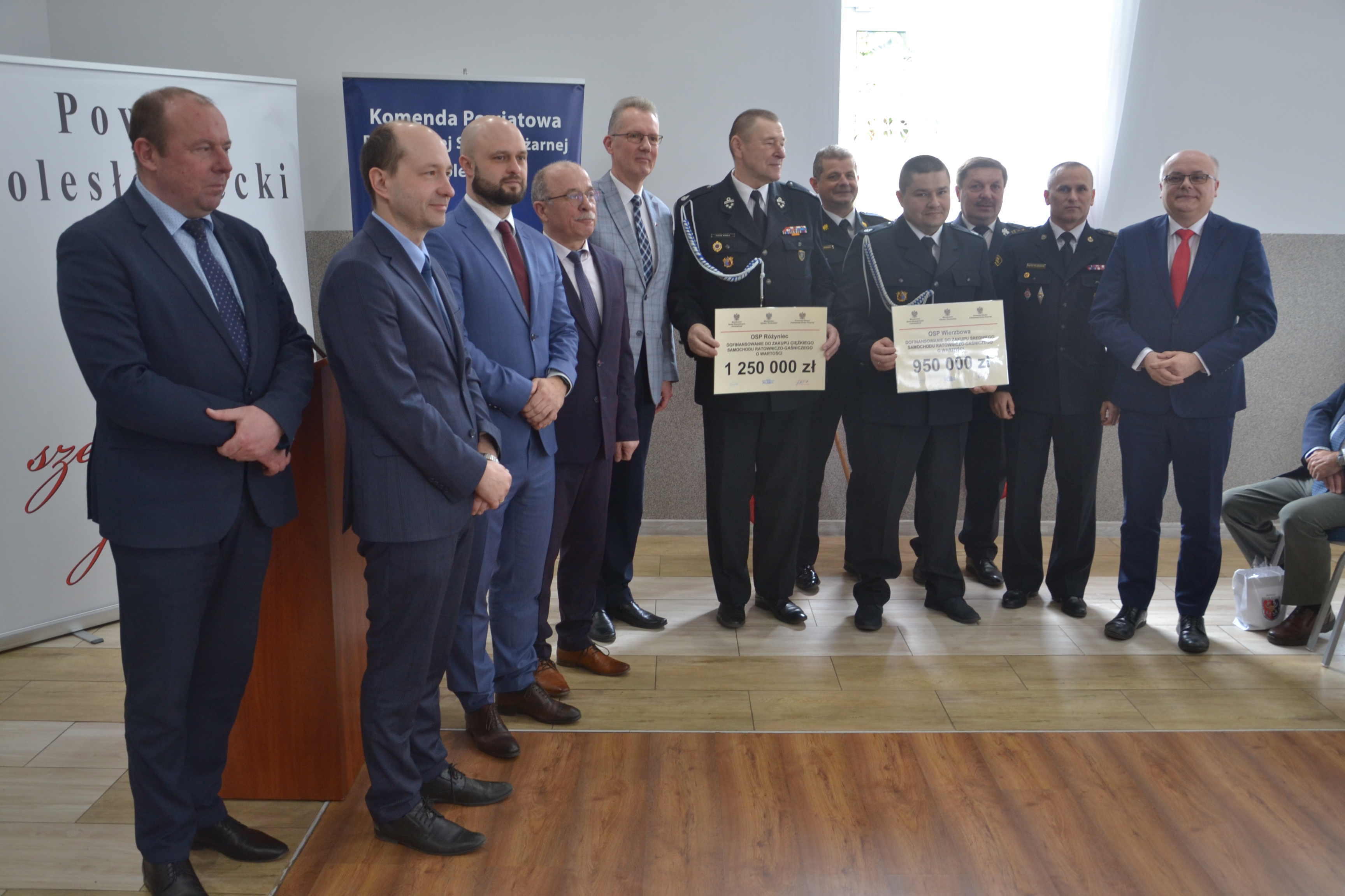 We wtorek, 4 kwietnia 2023 r. Ochotnicze Straże Pożarne z trzech powiatów województwa dolnośląskiego odebrały promesy na zakup nowych samochodów ratowniczo–gaśniczych. Uroczyste wręczenie promes odbyło się w Różyńcu gm. Gromadka (powiat bolesławiecki).
