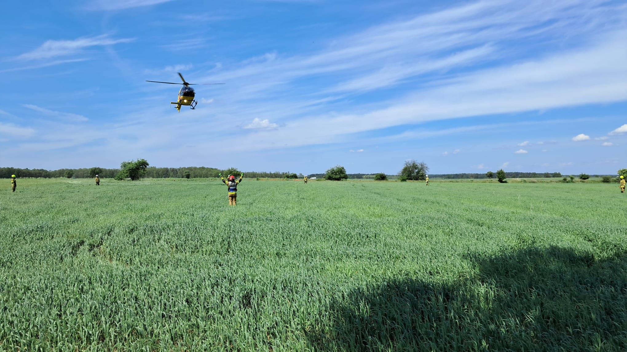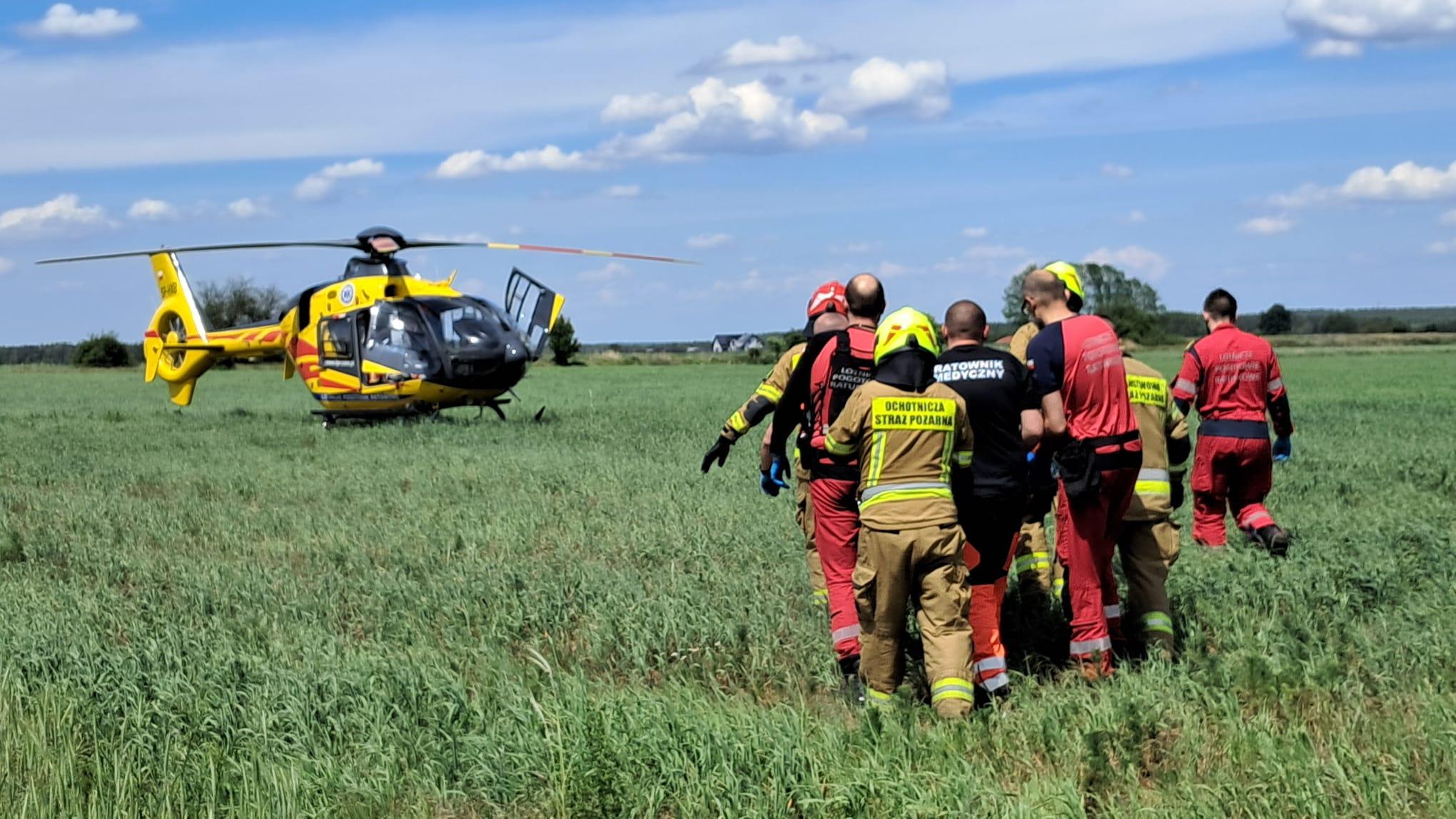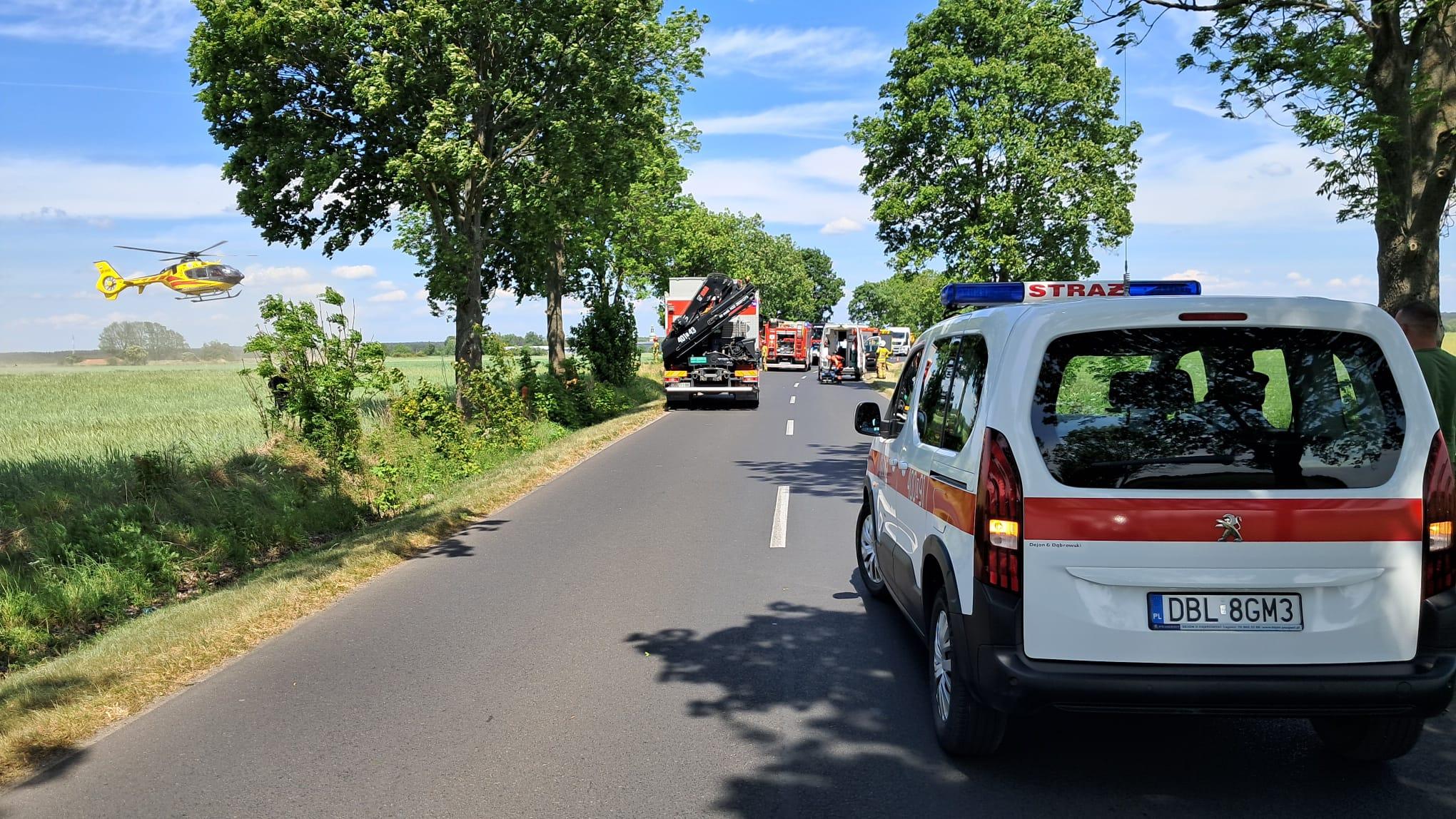 Po przybyciu na miejsce zdarzenia zastępów jednostek ochrony przeciwpożarowej strażacy zastali uszkodzone pojazdy znajdujące się na jezdni i w rowie. Samochodami podróżowały trzy osoby. W wyniku zderzenia najciężej poszkodowane zostało dziecko. Na miejscu lądował śmigłowiec lotniczego pogotowia ratunkowego. Dziecko zostało zabrane przez śmigłowiec do szpitala.
