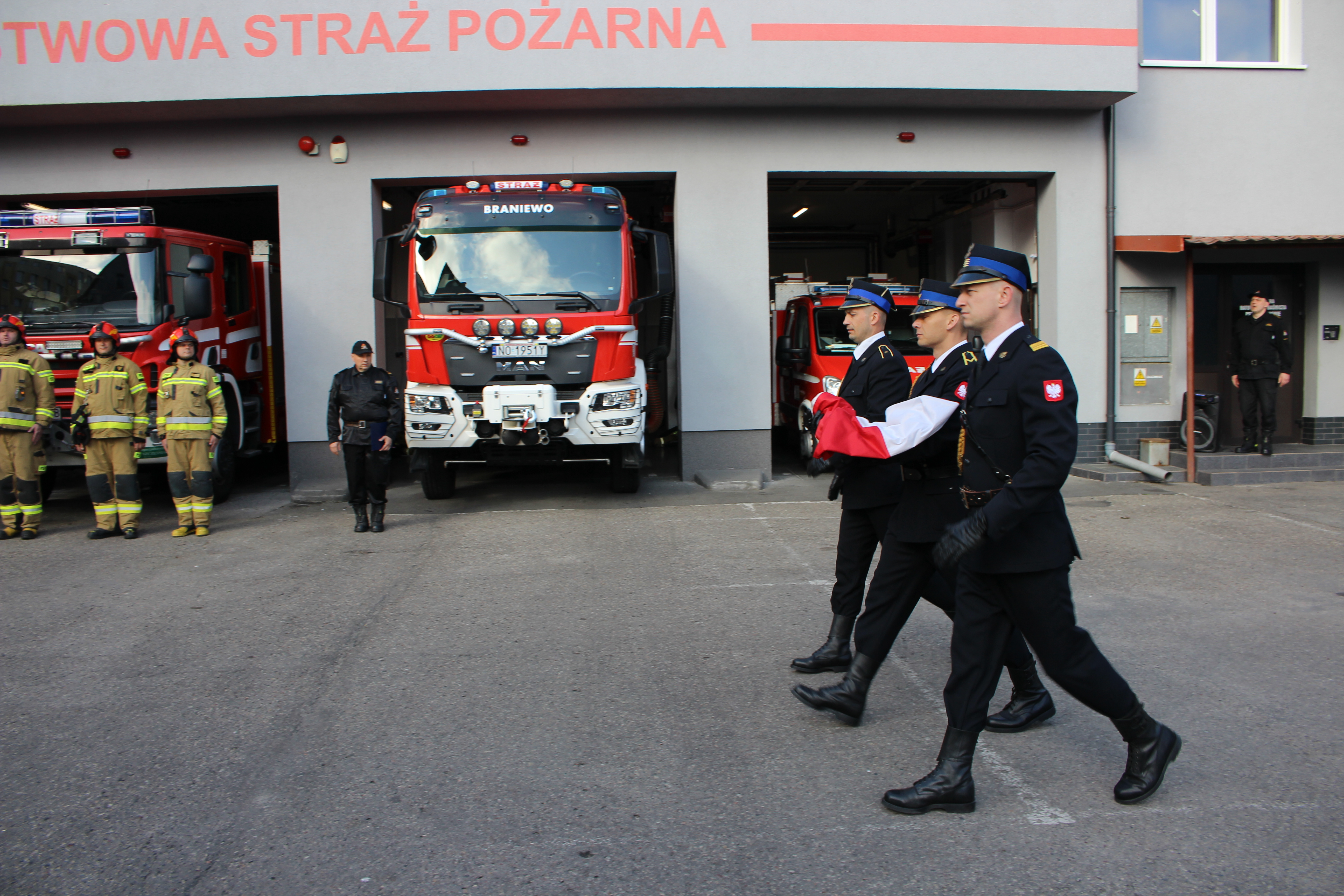 Punktualnie o godz. 12:00 strażacy z Komendy Powiatowej Państwowej Straży Pożarnej w Braniewie uczestniczyli w uroczystości na placu ks. prał. Tadeusza Brandysa, gdzie odbyło się uroczyste podniesienie flagi narodowej na maszt.