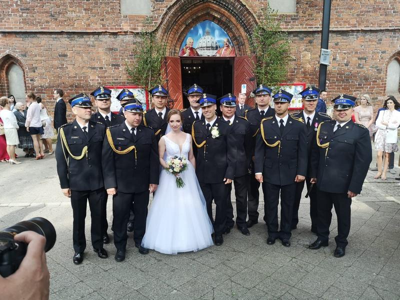 W uroczystości zaślubin uczestniczyli koledzy z Komendy Powiatowej Państwowej Straży Pożarnej w Braniewie oraz druhny i druhowie z jednostki Ochotniczej Straży Pożarnej w Ornecie. Po uroczystości zaślubin strażacy utworzyli przed kościołem szpaler, pod którym przy dźwiękach uderzeń toporków strażackim przeszła Młoda Para, wkraczając na drogę wspólnego życia.