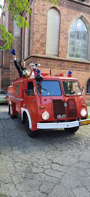 Radosławowi oraz jego uroczej małżonce Sylwii życzymy szczęścia, zdrowia oraz wszelkiej pomyślności. Młoda para strażaków odjechała zabytkowym pojazdem pożarniczym oświadczając dla mieszkańców Ornety o tym ważnym i doniosłym wydarzeniu w ich życiu.