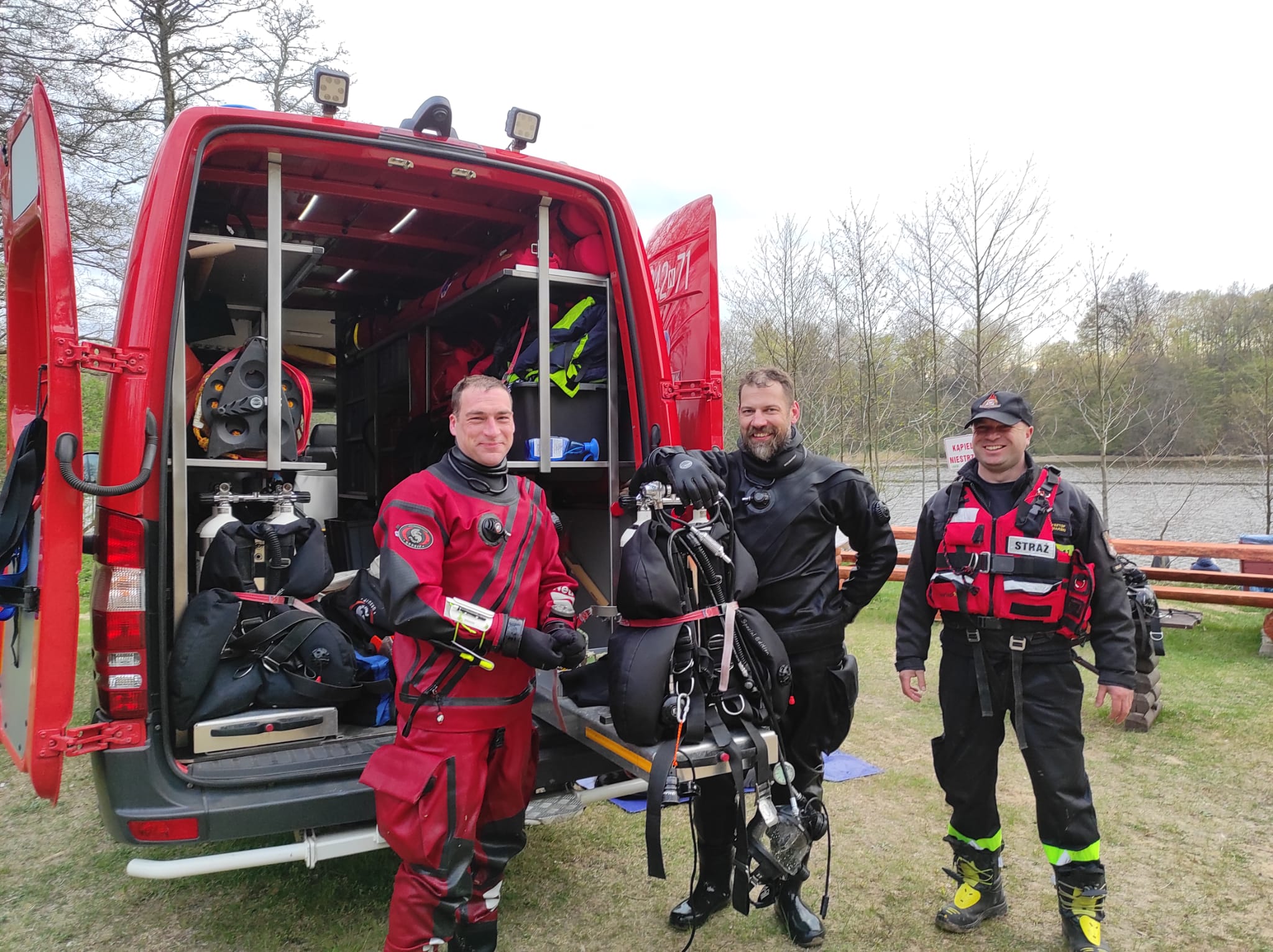 3 maja br. kilkanaście minut po godz. 16:00 Stanowisko Kierowania Państwowej Straży Pożarnej w Braniewie odebrało zgłoszenie o pojeździe, który wpadł do wody jeziora Pierzchalskiego. Z uwagi na brak pełnych informacji o zdarzeniu na miejsce skierowano znaczny potencjał ratowniczy oraz funkcjonariuszy braniewskiej policji. Na miejscu okazało się, że bus zaparkowany w pobliżu plaży z niewyjaśnionych przyczyn zjechał do wody. Próby powstrzymania przez właścicieli staczającego się pojazdu nie przyniosły efektu. Pojazd po kilku minutach całkowicie pochłonęła otchłań jeziora. Na szczęście nikt nie pozostał wewnątrz samochodu. Na miejscu zdarzenia pracowali strażacy z Państwowej Straży Pożarnej w Braniewie, specjalistyczna grupa wodno-nurkowa z Jednostki Ratowniczo – Gaśniczej PSP nr 2 w Elblągu, strażacy Wojskowej Straży Pożarnej, Ochotniczej Straży Pożarnej z Płoskini i Długoboru. Aby zlokalizować pojazd na dnie jeziora do działań wkroczyli strażacy wchodzący w skład specjalistycznej grupy ratownictwa wodno – nurkowego z KM PSP w Elblągu. Nurkowie Państwowej Straży Pożarnej po kilku minutach zlokalizowali auto, do którego podczepiona został stalowa lina. Bus z wykorzystaniem pojazdu pożarniczego został wydobyty na zewnątrz z dna jeziora. To pierwsze w tym roku wspólne działania braniewskich i elbląskich strażaków na wodzie. Na szczęście to zdarzenie zakończyło się szczęśliwie. Jednak strażacy zwracają się z apelem o ostrożność oraz przestrzeganie zasad bezpieczeństwa, które w trakcie wypoczynku są istotnym elementem.