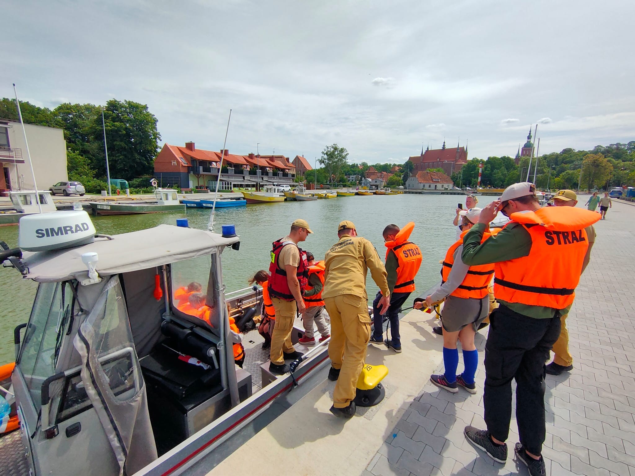 O bezpieczeństwie wypoczynku nad wodą strażacy z Państwowej Straży Pożarnej w Braniewie rozmawiali z zuchami i harcerzami podczas spotkania w porcie we Fromborku.