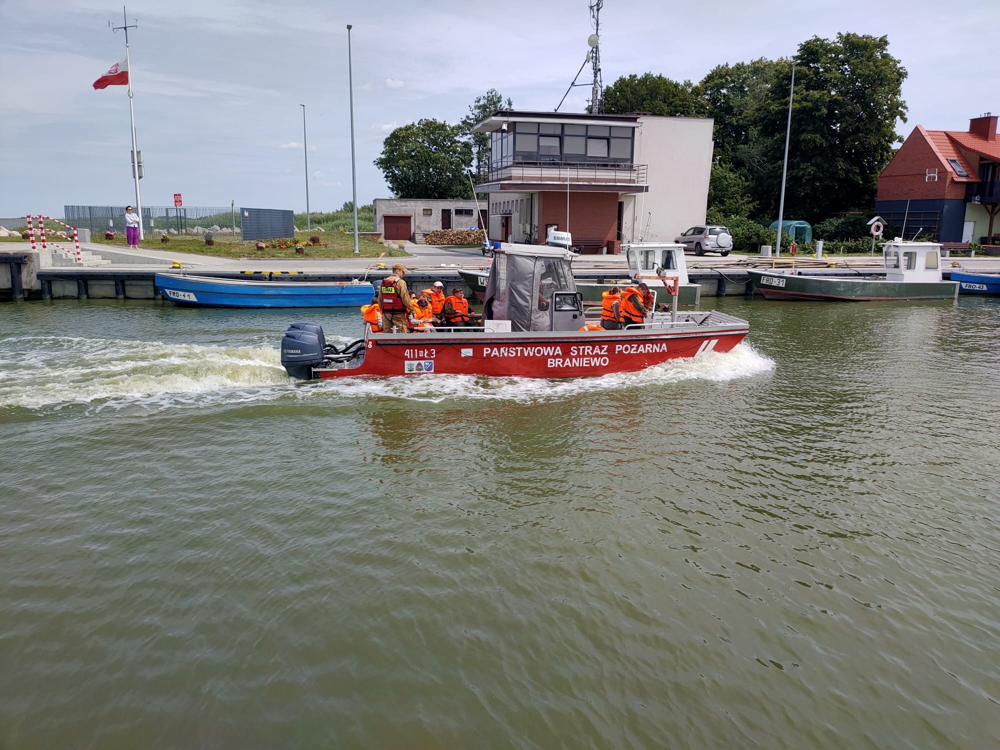 Harcerze mogli zapoznać się z wyposażeniem łodzi ratowniczej, która wykorzystywana jest do działań przez strażaków Państwowej Straży Pożarnej w Braniewie. Miłym akcentem była wspólna podróż po Zalewie Wiślanym na strażackiej jednostce pływającej.