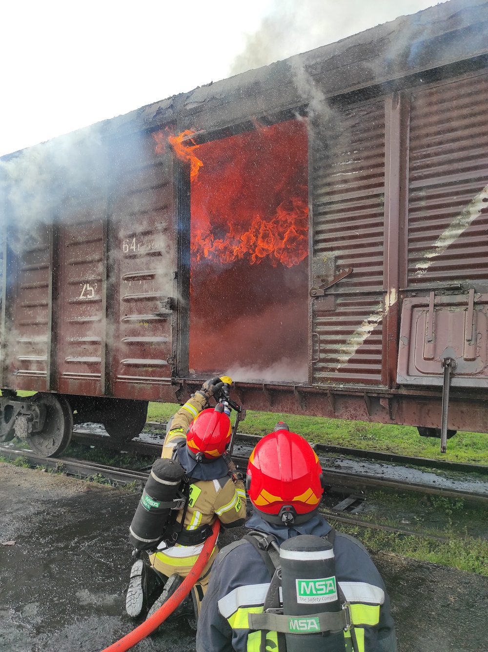 Ćwiczenia realizowano na terenie jednej z braniewskich firm, która użyczyła dla strażaków towarowy wagon kolejowy. Zajęcia praktyczne poprzedzony były omówieniem zagadnień z zakresu charakterystyki pożarów wewnętrznych, procesu spalania oraz zjawisk niebezpiecznych przy tego typu zdarzeniach. Zajęcia praktyczne to techniki operowania prądami gaśniczymi, algorytm postępowania i otwierania drzwi, współpracę roty gaśniczej, wykorzystanie lancy gaśniczej oraz kamer termowizyjnych przy podawaniu środka gaśniczego. Wysoka temperatura nie ułatwiała zadań dla strażaków, którzy mieli okazję poligonowo ćwiczyć swoje umiejętności.