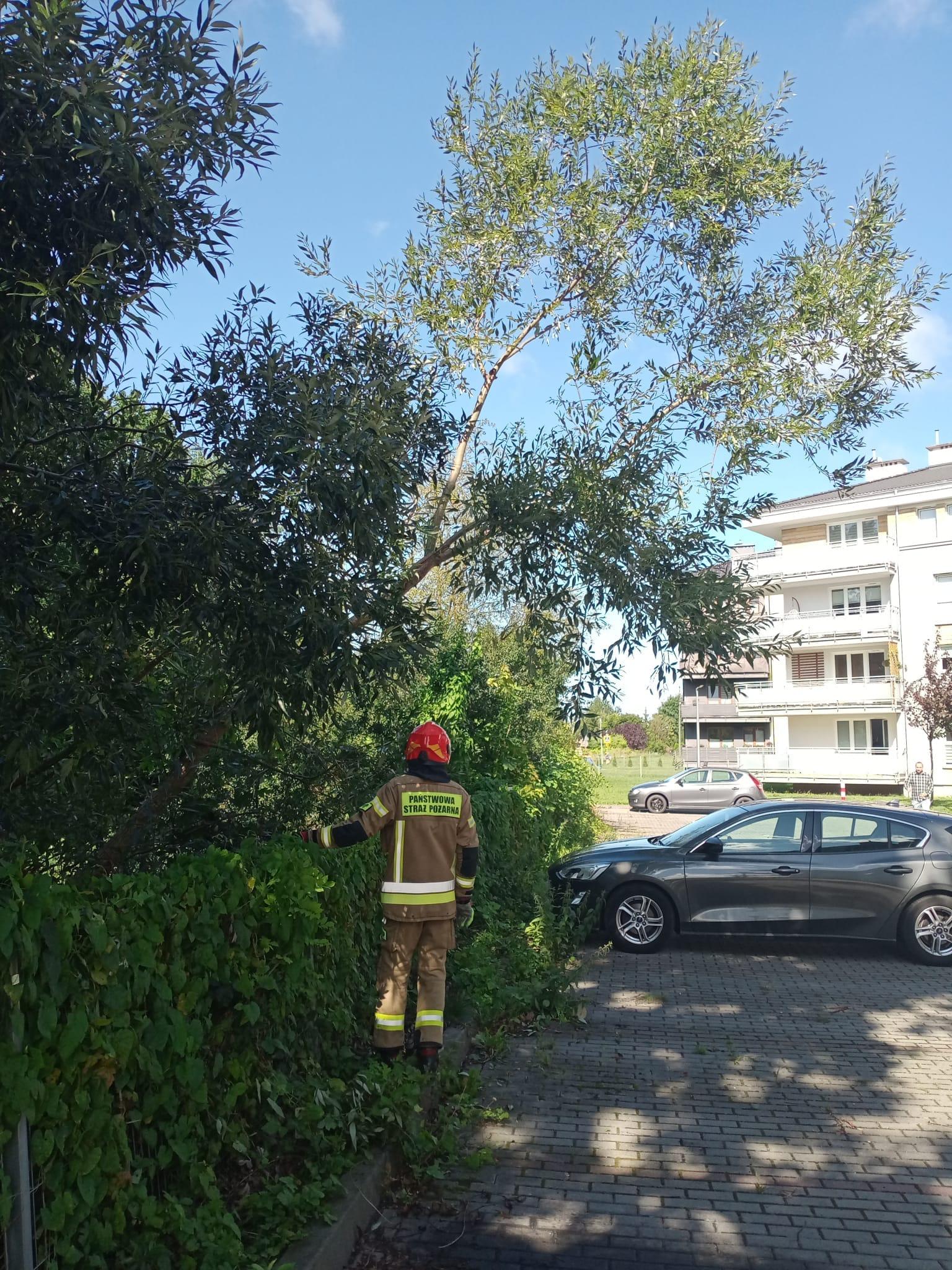 W działaniach niezbędne okazało się wykorzystanie autodrabiny pożarniczej. Pogoda na szczęście już się uspokoiła.