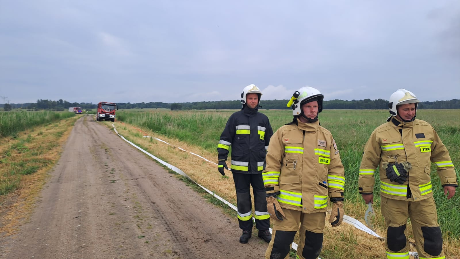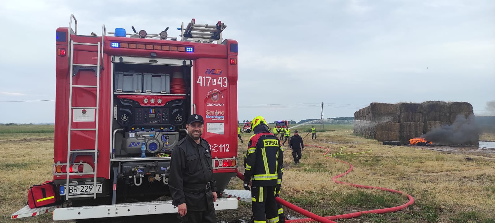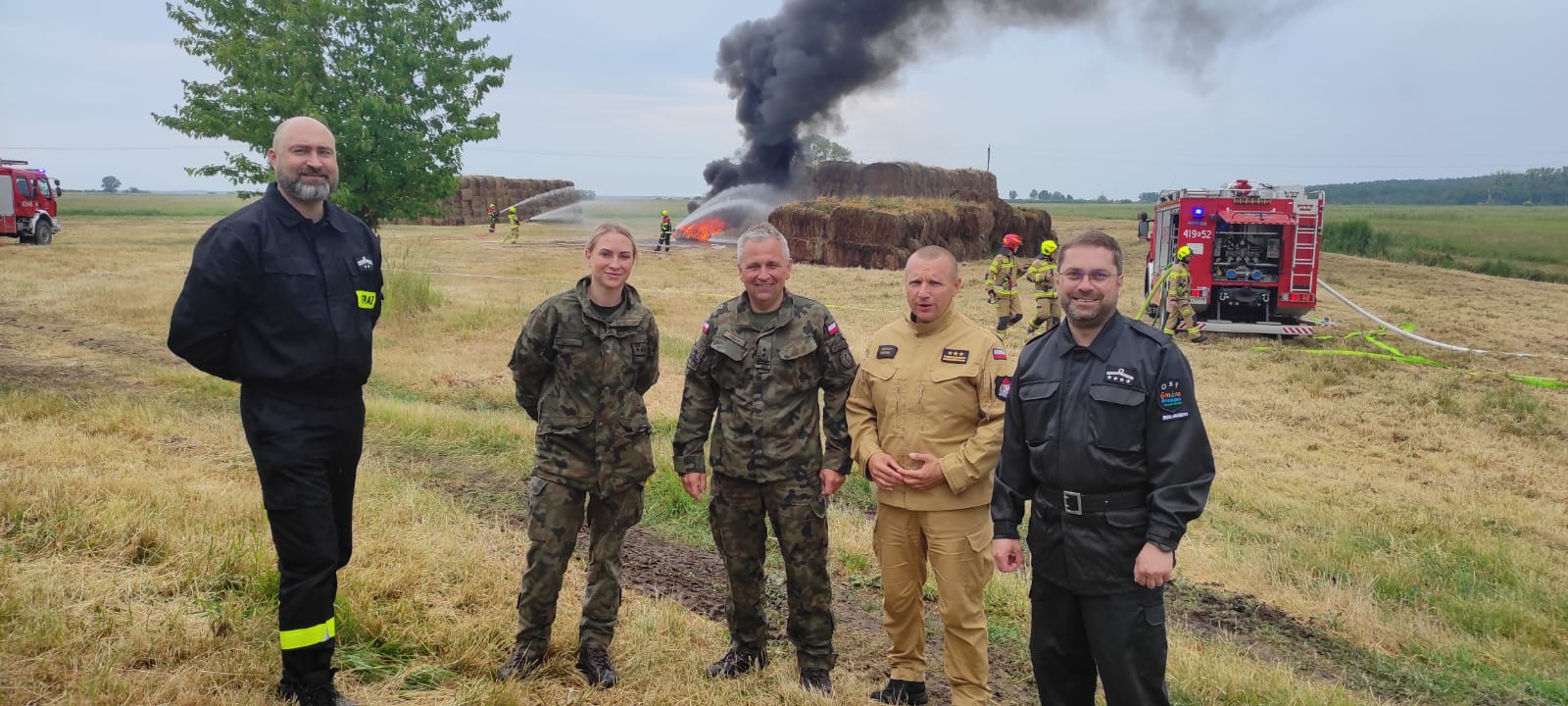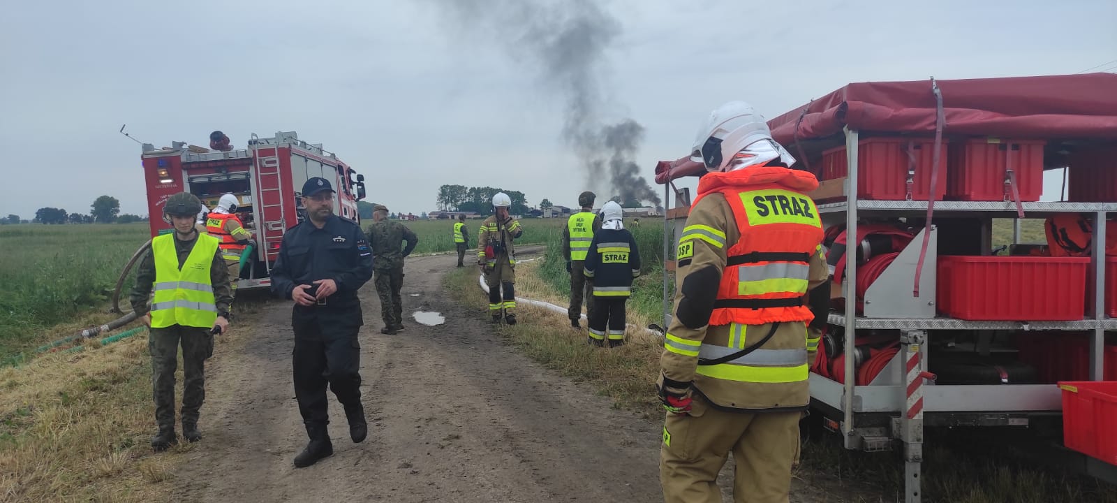 W sobotę, 17 czerwca br. na terenie gospodarstwa rolnego w Rusach gm. Braniewo przeprowadzono ćwiczenia taktyczno – bojowe „GOSPODARSTWO 2023”. W ćwiczeniach uczestniczyli strażacy z Komendy Powiatowej Państwowej Straży Pożarnej w Braniewie, wybrane jednostki Ochotniczych Straży Pożarnych oraz żołnierze wchodzący w skład 43 Batalionu Lekkiej Piechoty w Braniewie. Głównym celem ćwiczeń było doskonalenie działań w zakresie gaszenia pożarów płodów rolnych oraz dostarczania środka gaśniczego na duże odległości. Miejsce ćwiczeń podzielono na dwa odcinki bojowe na których zadania realizowali strażacy PSP, OSP. Strażacy ćwiczyli techniki dostarczania wody na duże odległości w tym budowanie magistrali wodnej opartej o pojazd wężowy i agregat pompowy oraz drugą linię zasilającą wykorzystującą siły i środki jednostek OSP. Dodatkowo w rozwinięciu magistrali wodnej uczestniczyli żołnierze 43 Batalionu Lekkiej Piechoty w Braniewie, wyposażeni w moduł dedykowany do zwalczania pożarów powierzchniowych. W trakcie ćwiczeń realizowano podgrywki w zakresie wymiany pojazdów pożarniczych, w tym poboru wody z wykorzystaniem autopomp pożarniczych, podawania środka gaśnicze z działek wodno – pianowych. Żołnierze WOT zabezpieczyli teren wokół miejsca prowadzonych działań przez strażaków oraz czynnie uczestniczyli w gaszeniu pożaru wspólnie ze strażakami. Na miejscu ćwiczeń obecni byli: Komendant Powiatowy PSP w Braniewie st. bryg. Ireneusz Ścibiorek, Z-ca Komendanta Powiatowego PSP bryg. Jarosław Skalski, D-ca JRG PSP w Braniewie st. kpt. Andrzej Kaliszuk, Dowódca 43 Batalionu Lekkiej Piechoty w Braniewie ppłk Adam Książak, Prezes Zarządu Gminnego ZOSP RP w Braniewie druh Jakub Bornus oraz Sekretarz Zarządu Oddziału Powiatowego ZOSP RP w Braniewie druh Damian Krasiński. W ćwiczeniach uczestniczyli strażacy ochotnicy z: OSP Braniewo, OSP Gronowo, OSP Lipowina, OSP Żelazna Góra, OSP Frombork, OSP Wielkie Wierzno, OSP Płoskinia, OSP Długobór, OSP Pieniężno oraz 60 żołnierzy WOT.