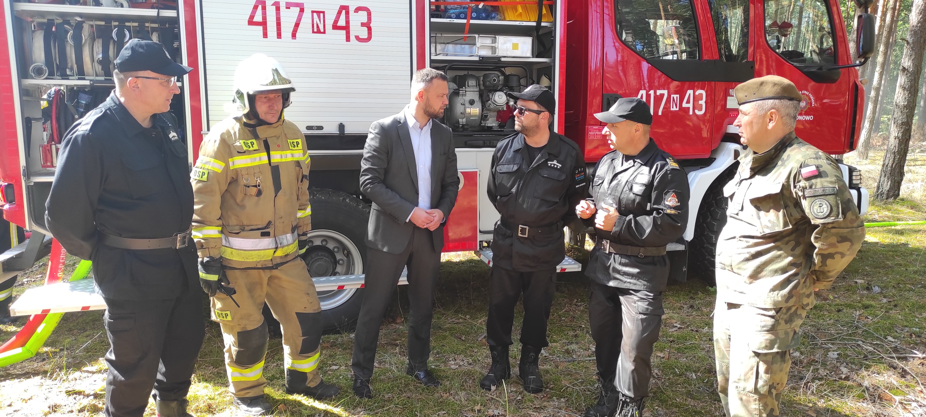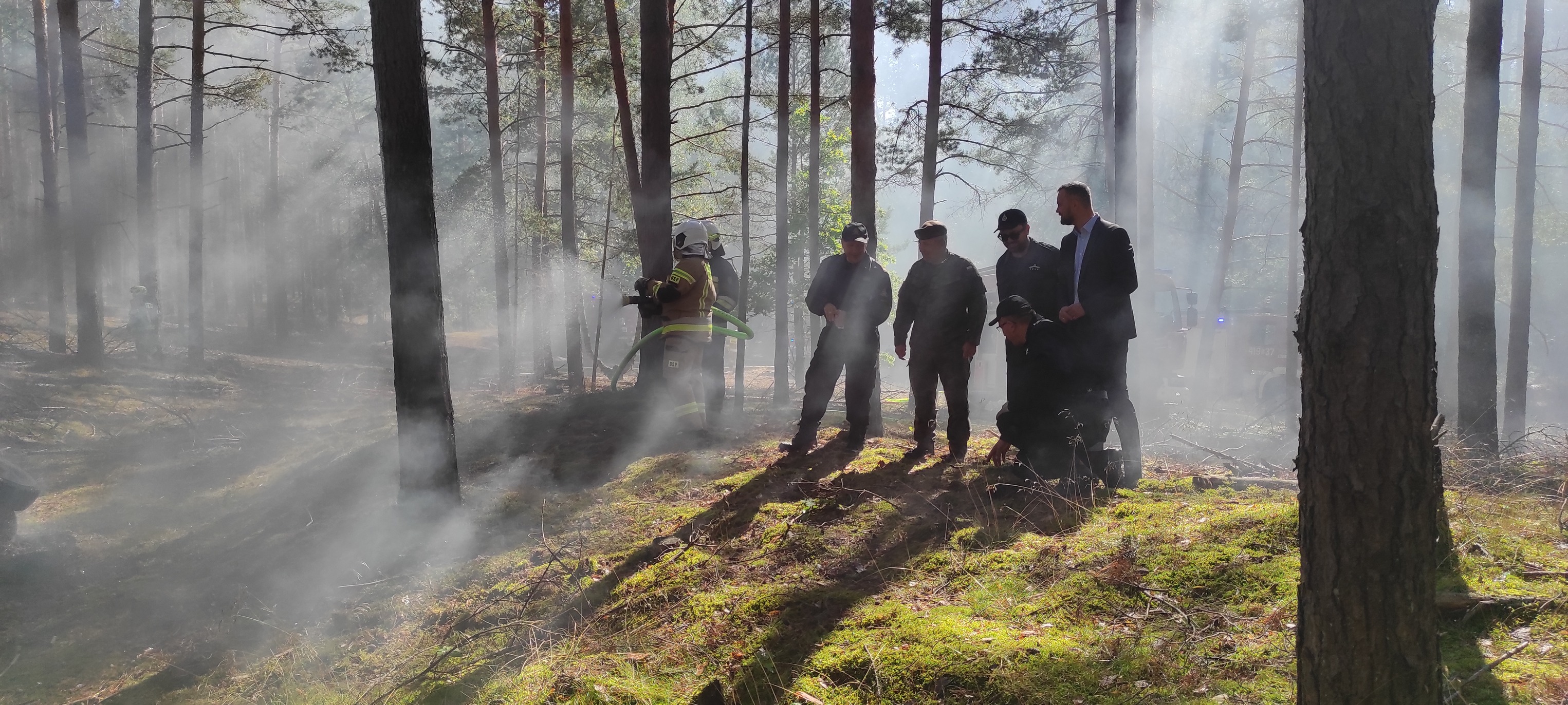 W pozorowanej akcji gaszenia strażacy wspierani byli przez pracowników Nadleśnictwa Zaporowo, Straż Leśną, funkcjonariuszy Komendy Powiatowej Policji w Braniewie oraz Placówki Straży Granicznej w Braniewie. Funkcjonariusze zabezpieczali odcinek drogi wojewódzkiej nr 507, którym przemieszczały się jednostki ochrony przeciwpożarowej. Dodatkowo na miejsce pożaru skierowano potencjał 9 Braniewskiej Brygady Kawalerii Pancernej oraz 43 Batalionu Lekkiej Piechoty w Braniewie. Żołnierze prowadzili działania w zakresie poszukiwań na powierzchni leśnej osób zaginionych, udzielenia pierwszej pomocy oraz wspierania strażaków w zakresie ograniczania skutków pożaru i rozwijania magistrali wodnej.