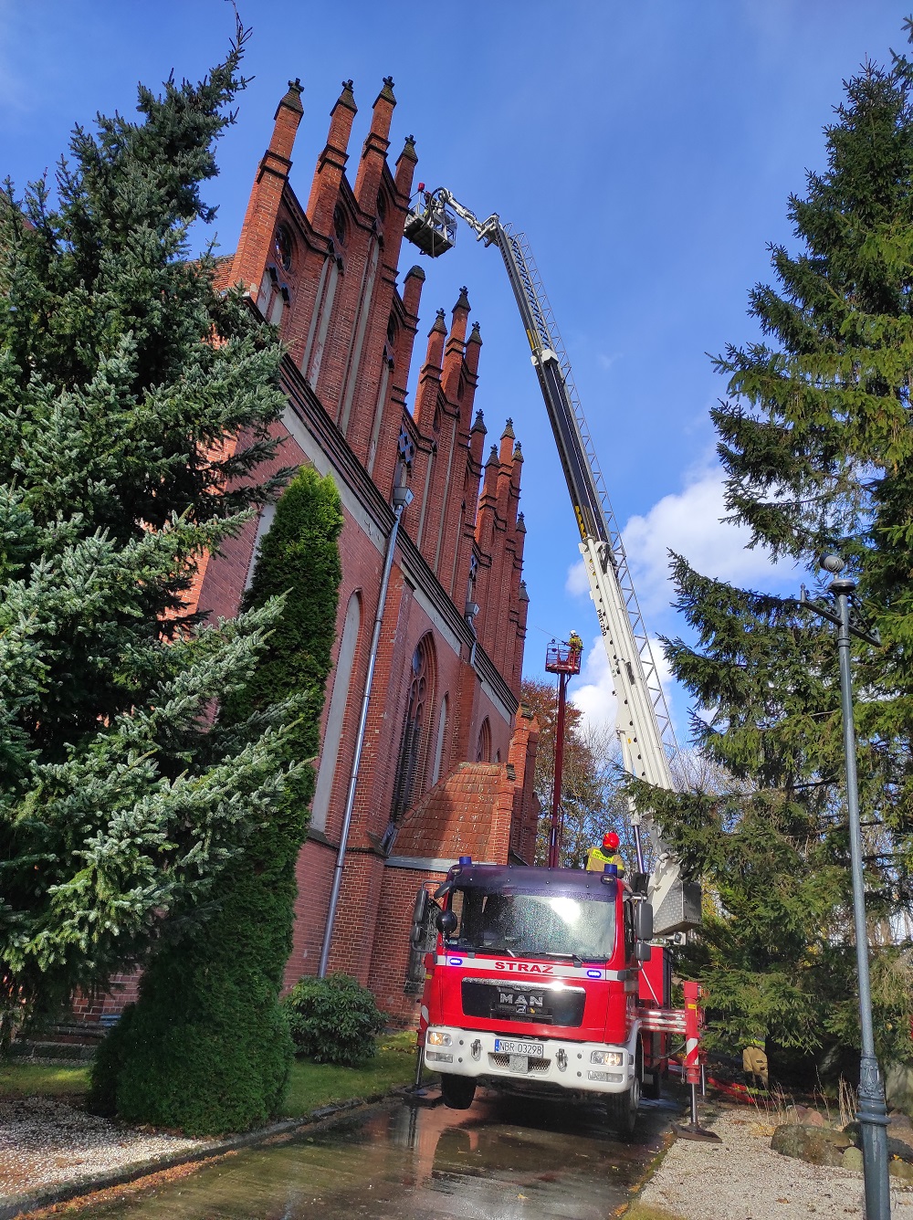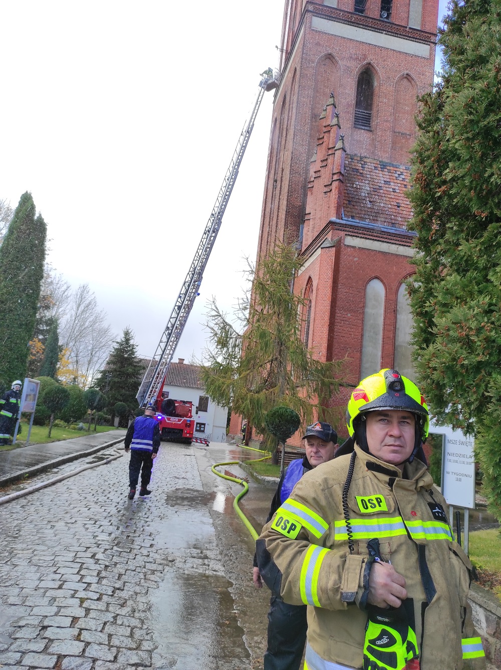 W sobotę, 23 października odbyły się ćwiczenia taktyczno – ratownicze „Parafia 2021”. Na miejsce ćwiczeń wybrano obiekt sakralny należący do parafii Św. Ap. Piotra i Pawła w Pieniężnie. Scenariusz ćwiczeń zakładał zaprószenie ognia w wieży kościelnej.
