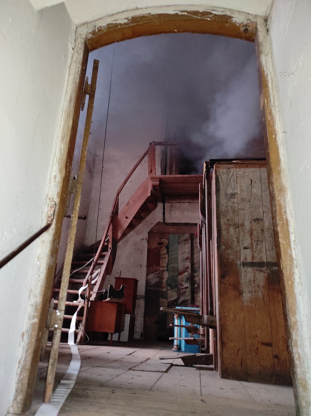 Do działań jako pierwsi ruszyli strażacy – ochotnicy z jednostki OSP Pieniężno, których po kilku minutach wsparli ochotnicy z terenu gminy Pieniężno. Zadymienie w wieży kościelnej, skomplikowany układ wejścia, poszukiwanie i ewakuacja osób poszkodowanych, dotarcie do źródła pożaru oraz zbudowanie odpowiedniego zaopatrzenia wodnego z rzeki Wałsza to główne zadania, z którymi zmagali się uczestniczący w ćwiczeniach strażacy.