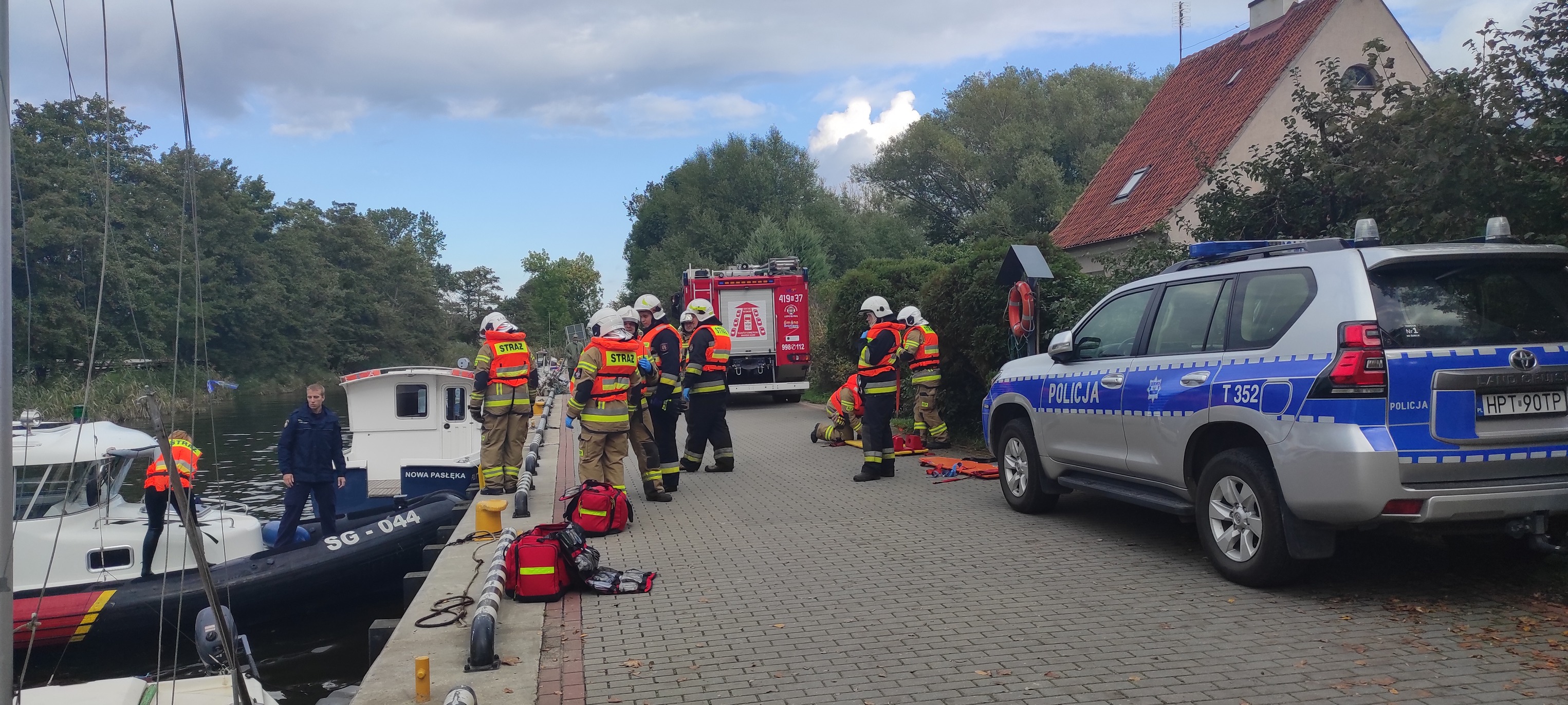 29 września br. w pobliżu miejscowości Nowa Pasłęka gm. Braniewo z inicjatywy Komendy Powiatowej Państwowej Straży Pożarnej w Braniewie odbyły się ćwiczenia ratownicze służb i podmiotów w zakresie doskonalenia działań ratowniczych na wodach Zalewu Wiślanego. Scenariusz ćwiczeń zakładał zderzenie dwóch jednostek pływających w odległości kilkuset metrów od linii brzegowej w pobliżu portu w Nowej Pasłęce. W wyniku zderzenia kilka osób znalazło się w wodzie oraz doszło do pożaru jednej z jednostek pływających. Zmienna pogoda nie ułatwiała działań dla ratowników znajdujących się na wodzie. W porcie przygotowano punkt przyjęcia osób poszkodowanych, które zostały podjęte z wody na jednostki ratownicze służb uczestniczących w ćwiczeniach.
