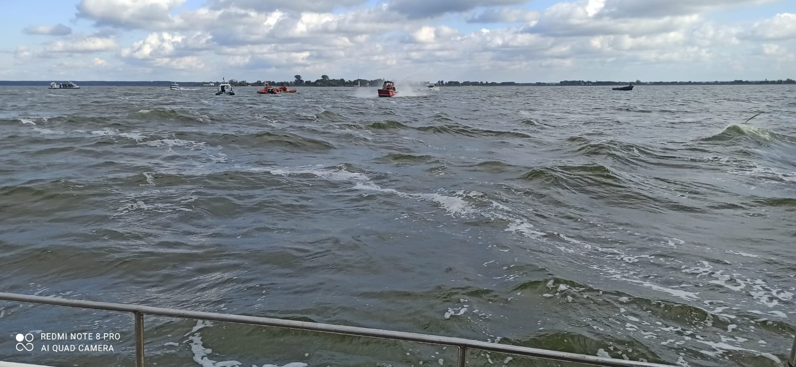 Działania ratownicze służb z pokładu poduszkowca Straży Granicznej obserwowali:
