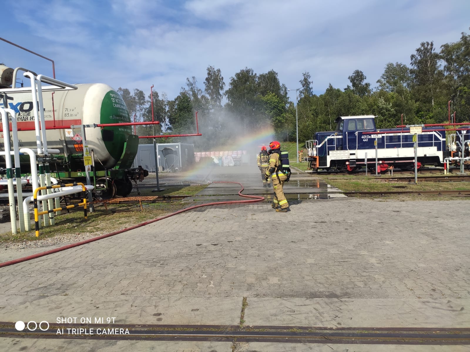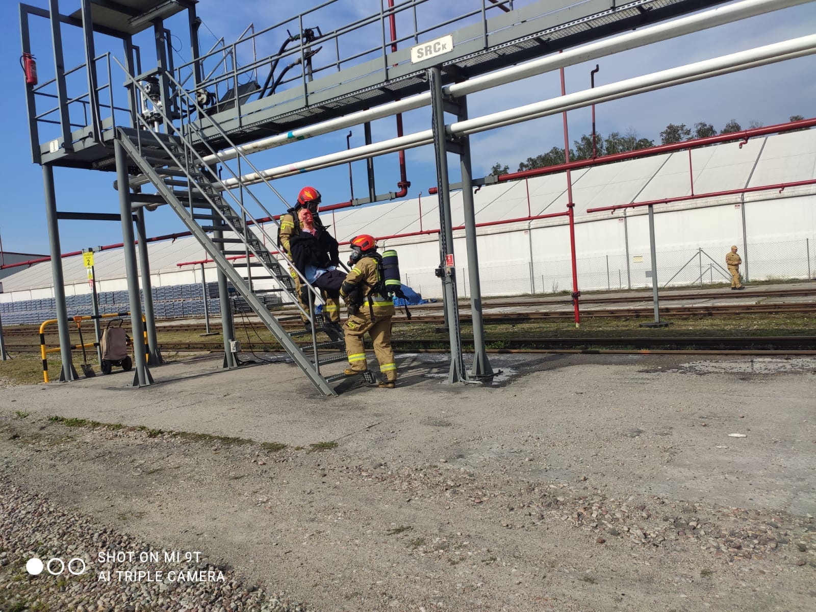 Jeszcze przed przyjazdem strażaków ewakuowany został jeden z rannych pracowników oraz usunięto pozostałe cysterny z gazem. Dla całego terminala przeładunkowego ogłoszony został również alarm, w trakcie którego sprawdzono procedury dotyczące ewakuacji i BHP. Jedna z podgrywek realizowana w trakcie ćwiczeń zakładała awarie systemu zraszaczy zainstalowanych w punkcie gazowym.