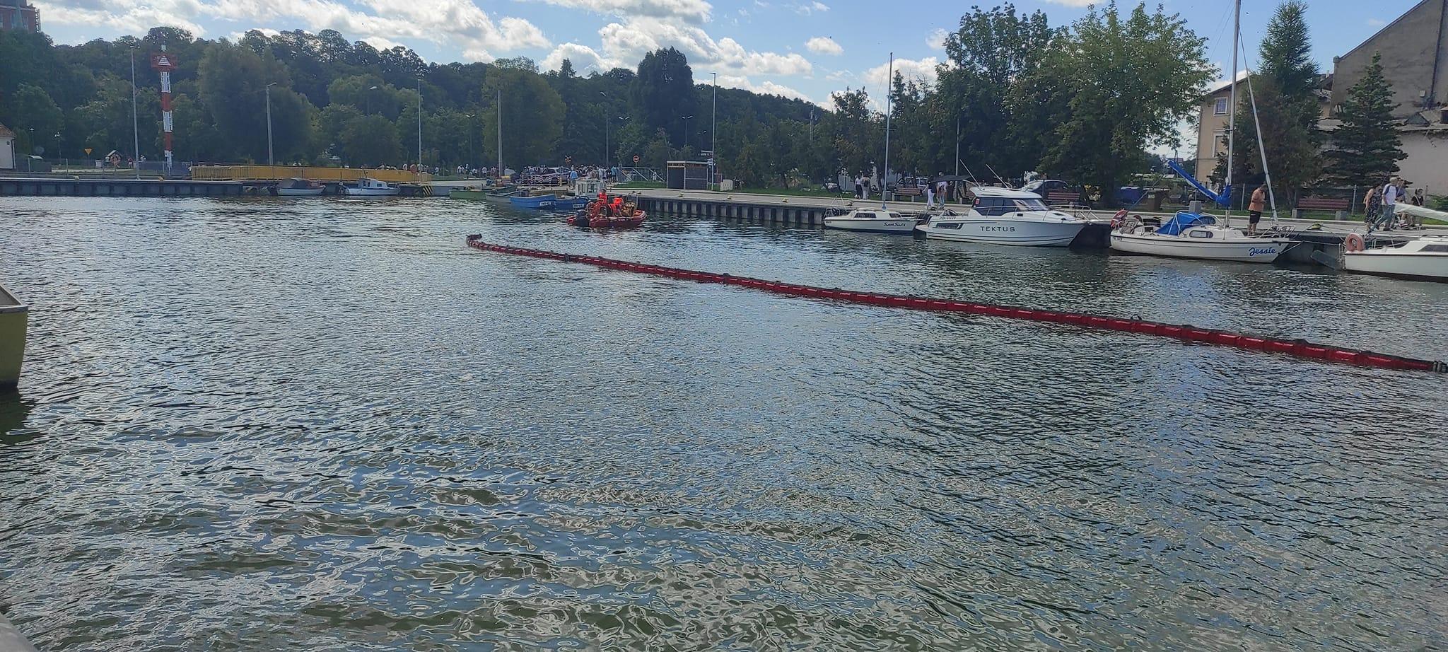 Strażacy z wykorzystaniem jednostek pływających rozłożyli zapory, sprawdzając jednocześnie skuteczność sprzętu dedykowanego do ograniczania emisji substancji niebezpiecznych na powierzchni cieków wodnych. Tego typu zapory mogą być wykorzystywane zarówno na ciekach wodnych płynących jak również na zbiornikach stojących.