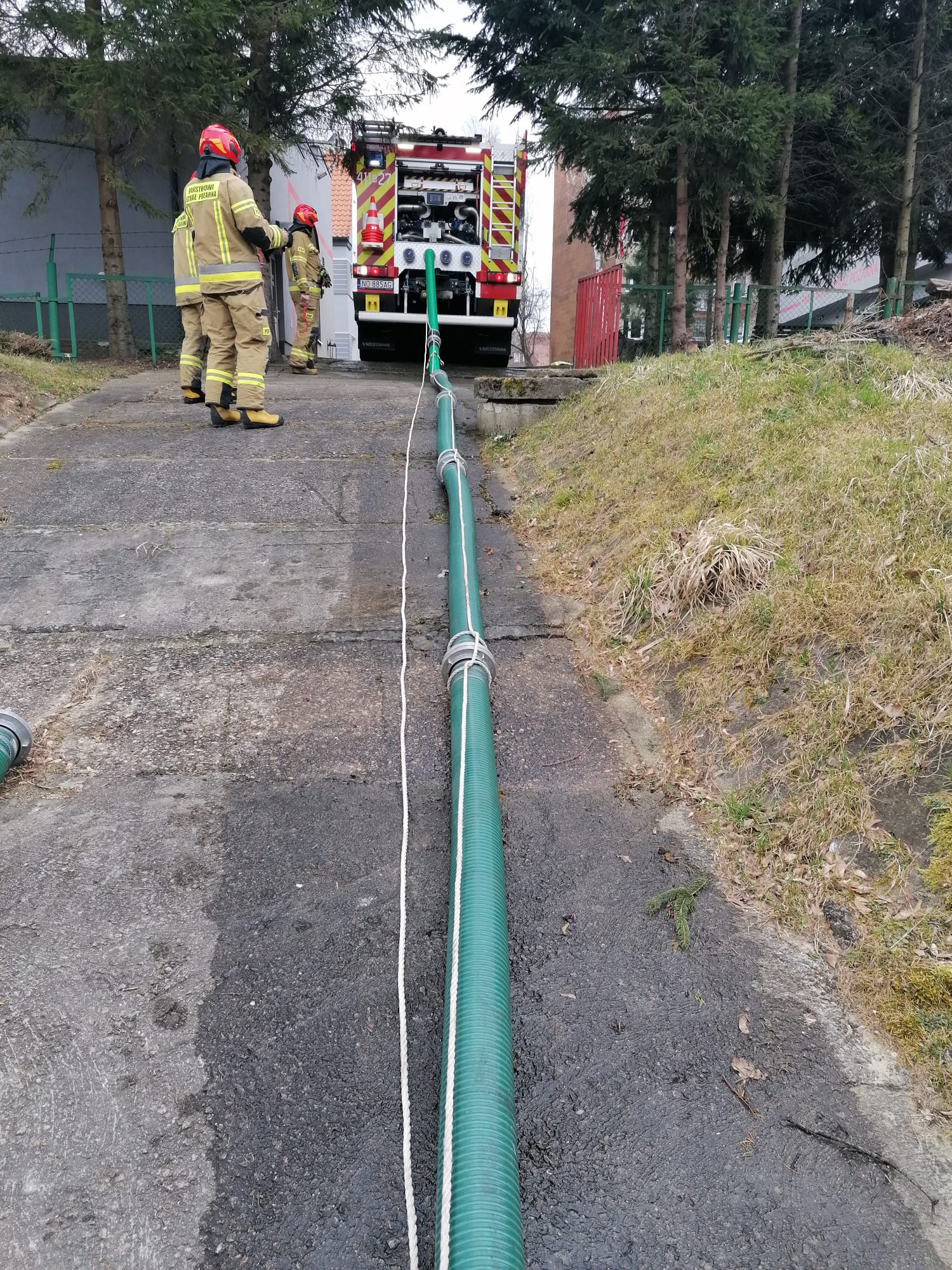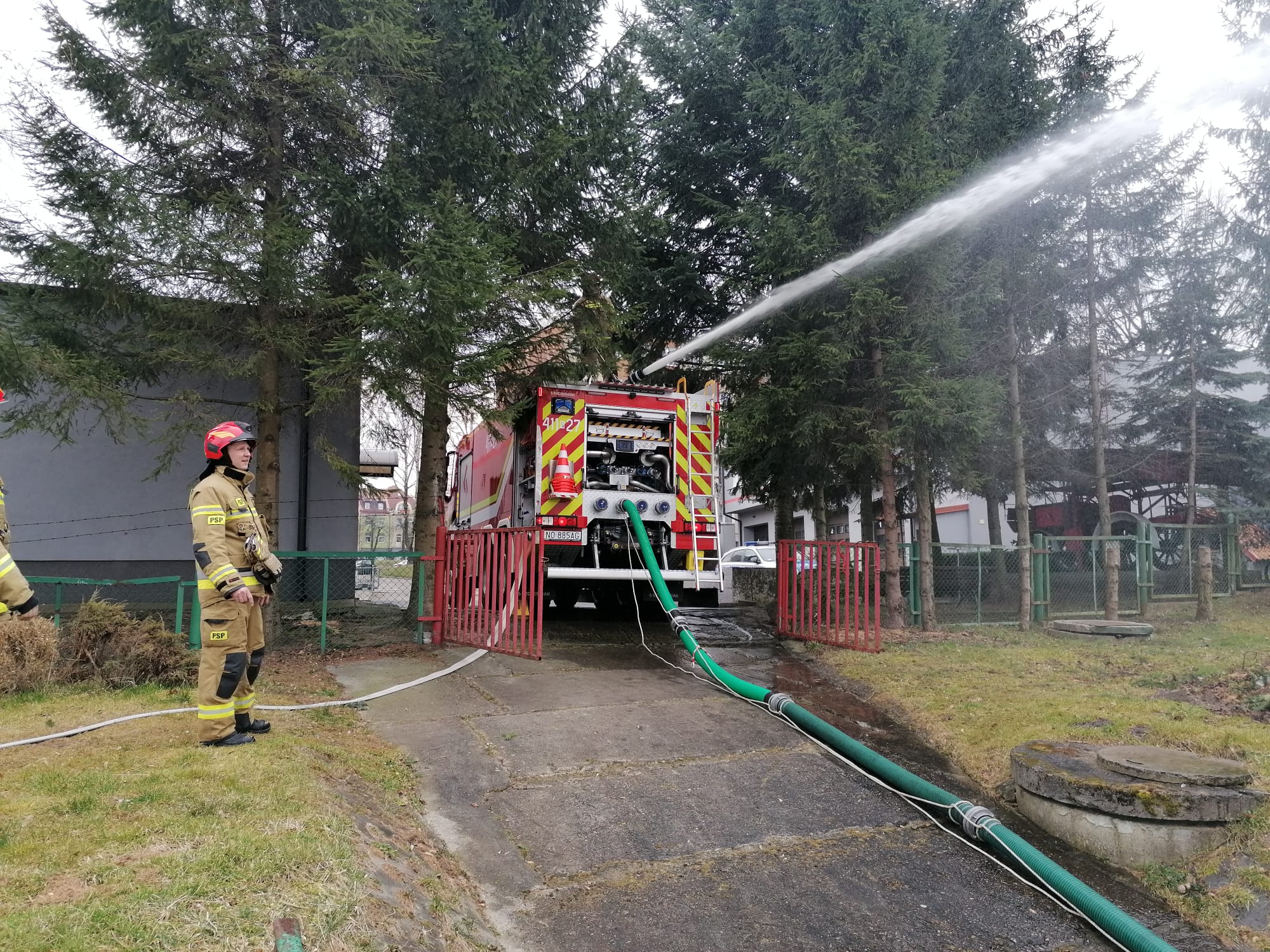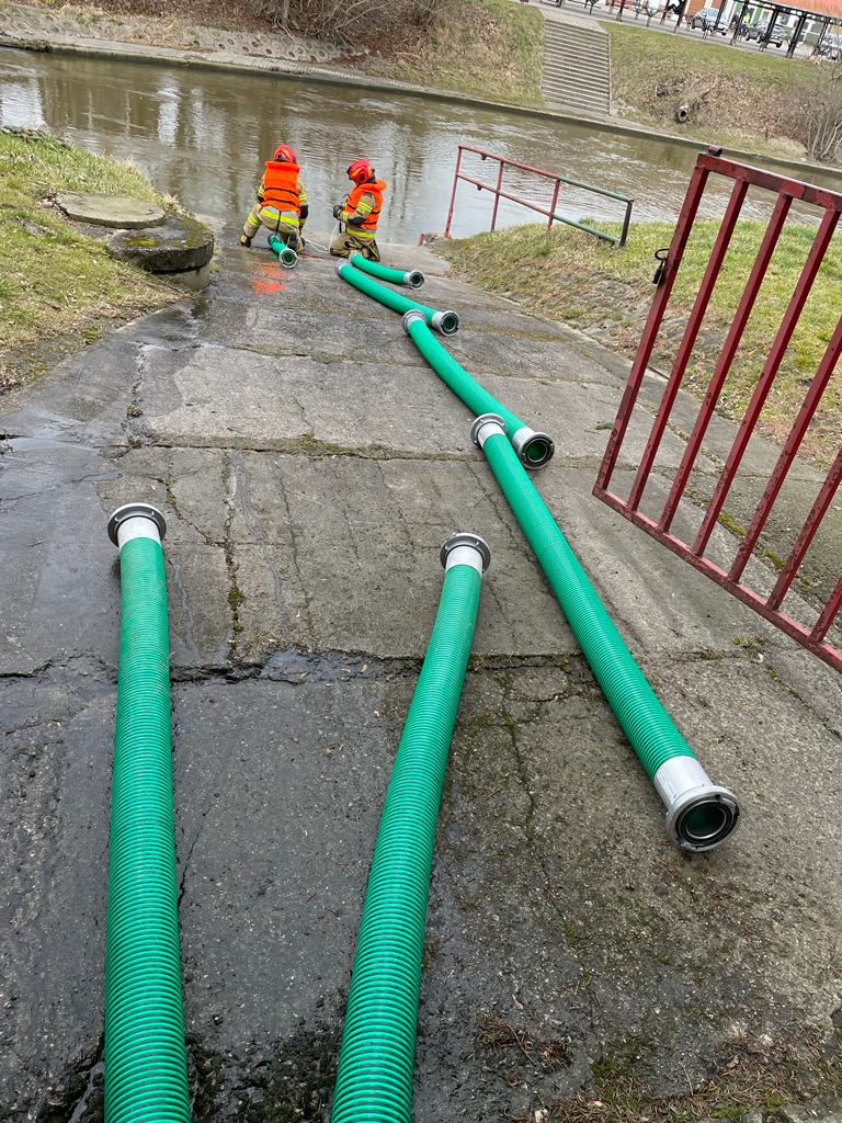 Ćwiczenia braniewskich strażaków PSP z zakresu poboru wody.