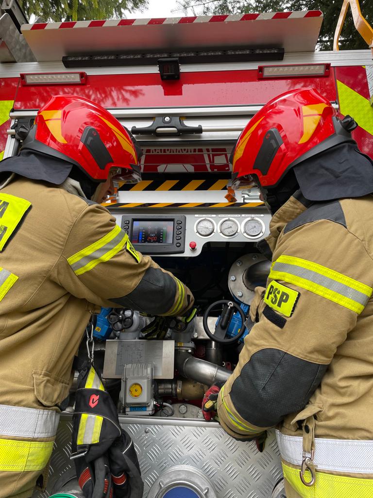 • sprawdzenie sprawności urządzenia jakim jest autopompa pożarnicza oraz podawanie środka gaśniczego na duże odległości z wykorzystaniem działka wodno – pianowego
