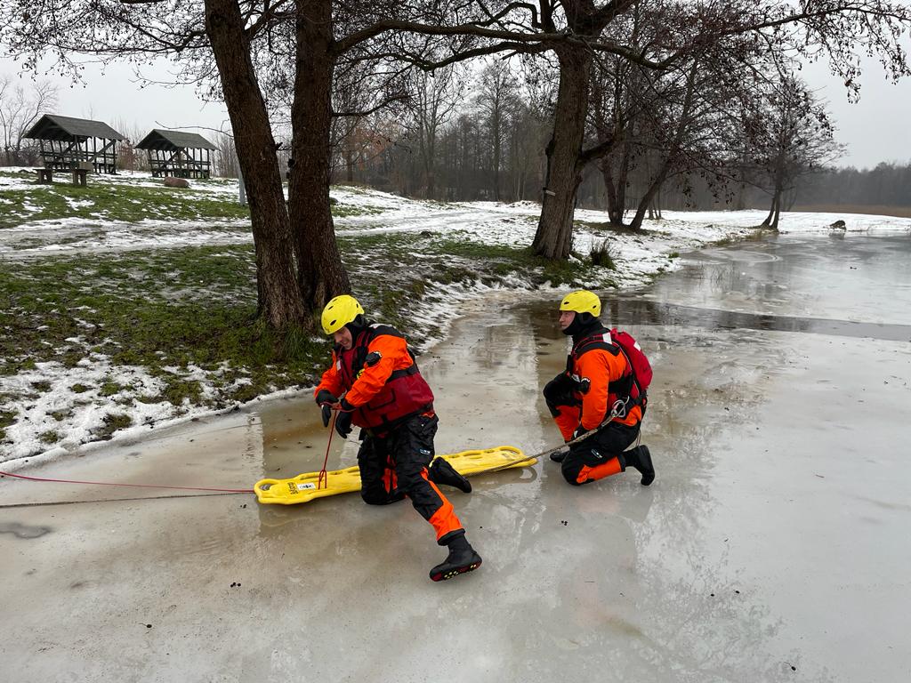 Strażacy z Jednostki Ratowniczo – Gaśniczej PSP w Braniewie w ramach doskonalenia zawodowego przeprowadzili cykl szkoleń w zakresie ratownictwa lodowego na akwenach wodnych.