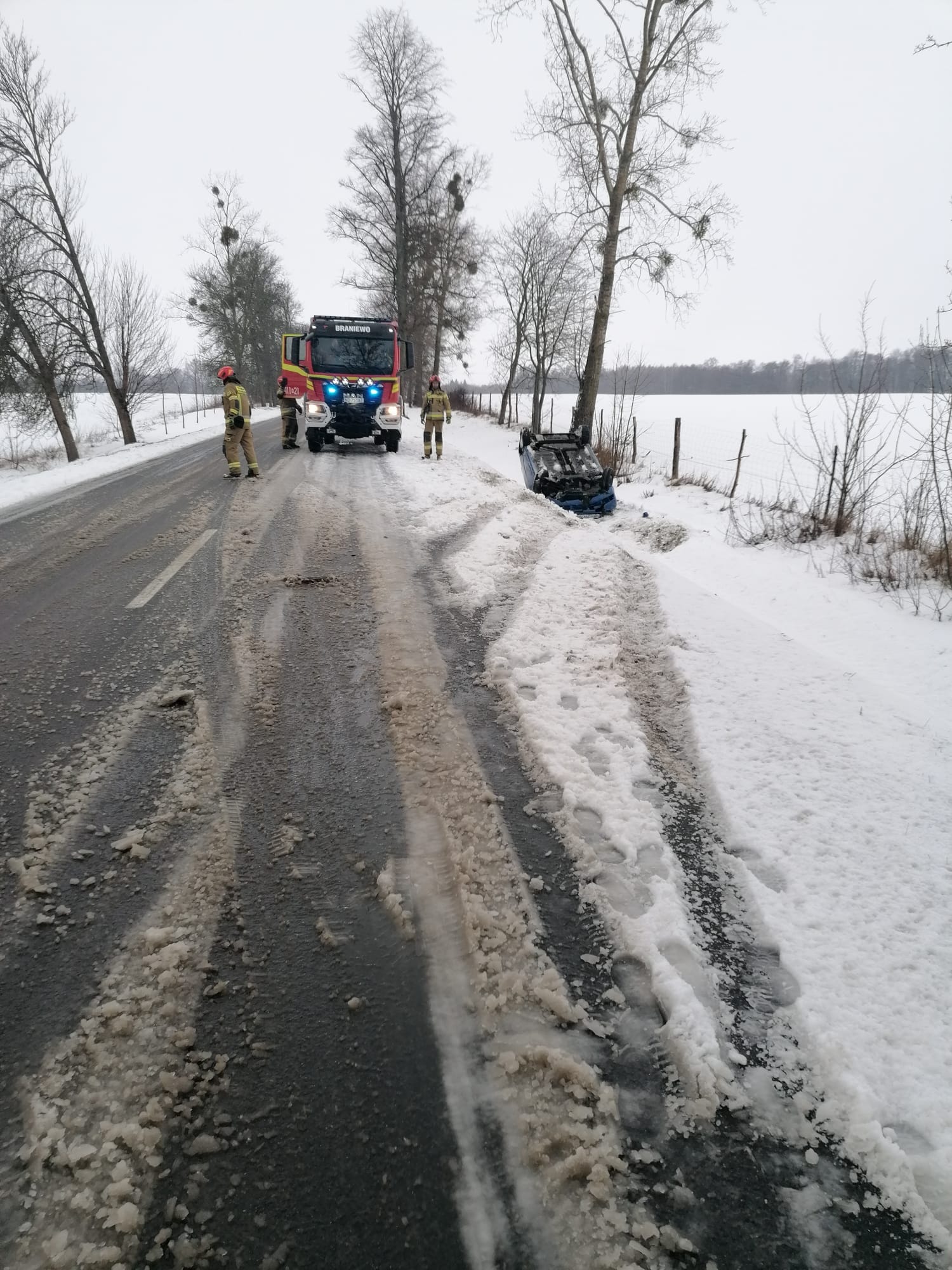 W sobotę 20 stycznia br około godziny 9.30 braniewscy strażacy otrzymali zgłoszenie o zdarzeniu drogowym z udziałem auta osobowego.
