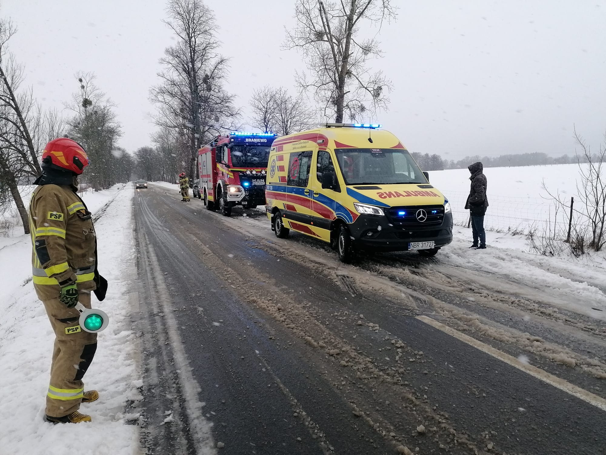 Na miejsce zdarzenia drogowego skierowano strażaków z Państwowej Straży Pożarnej w Braniewie, strażaków ochotników z OSP Lipowina, zespół ratownictwa medycznego oraz policjantów.