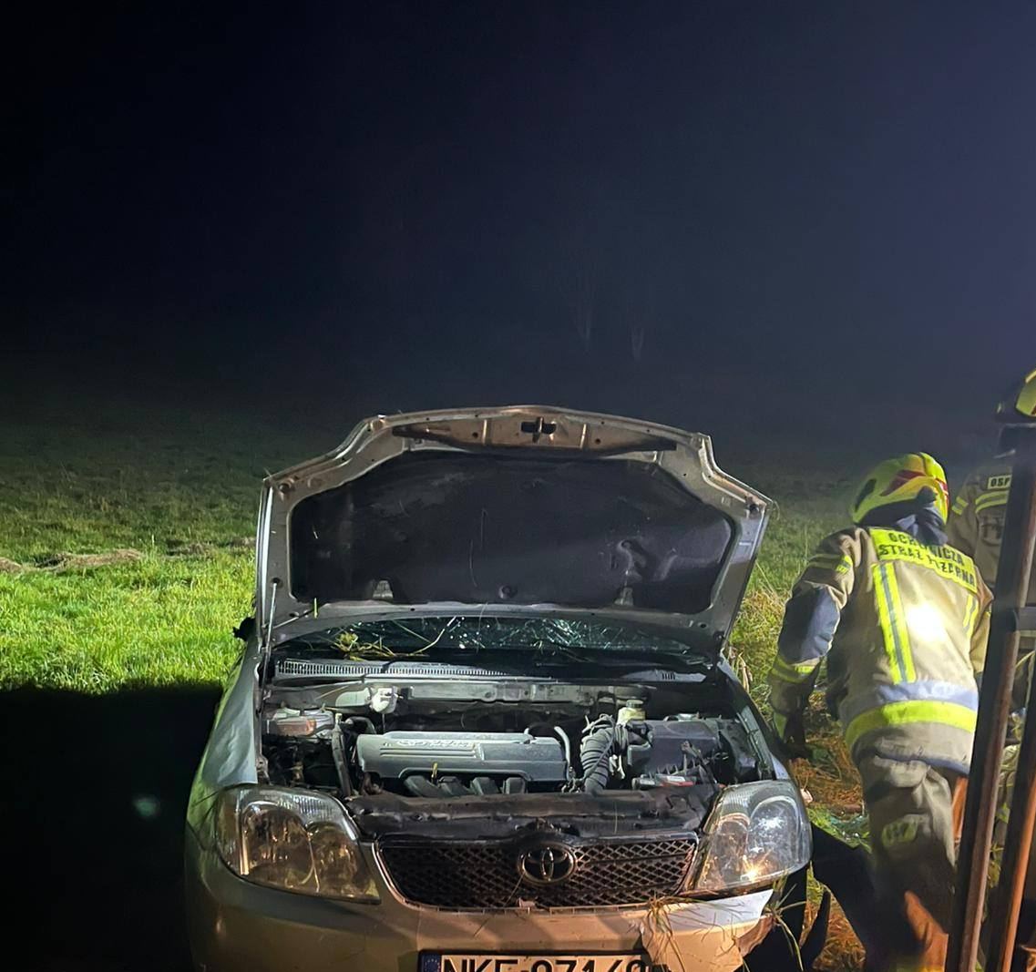 We wtorek, 11 listopada br. około godz. 20:00 na drodze wojewódzkiej nr 512 w pobliżu miejscowości Pluty gm. Pieniężno doszło do zdarzenia drogowego z udziałem toyoty corolli.