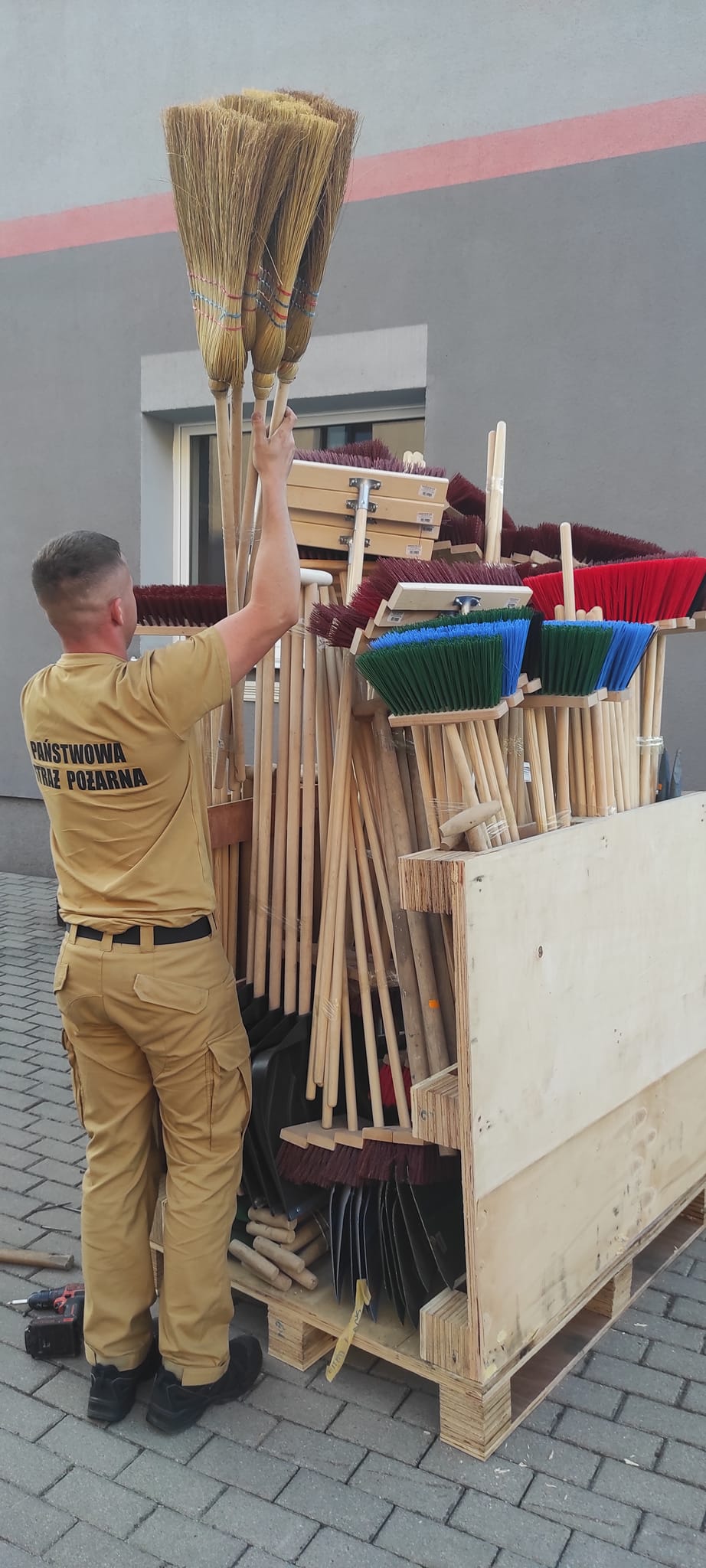 Strażacy układają, pakują, zabezpieczają i przygotowują do transportu na południe kraju.