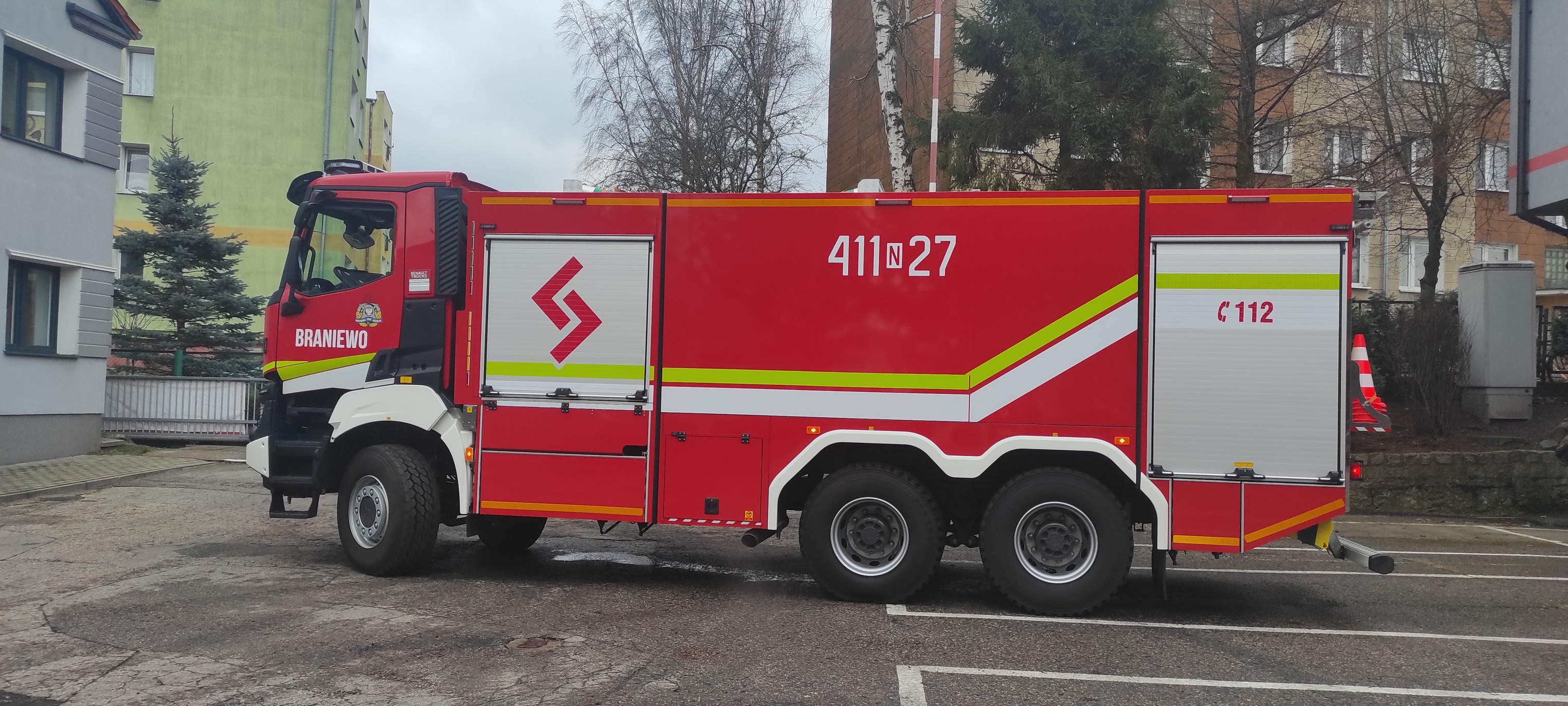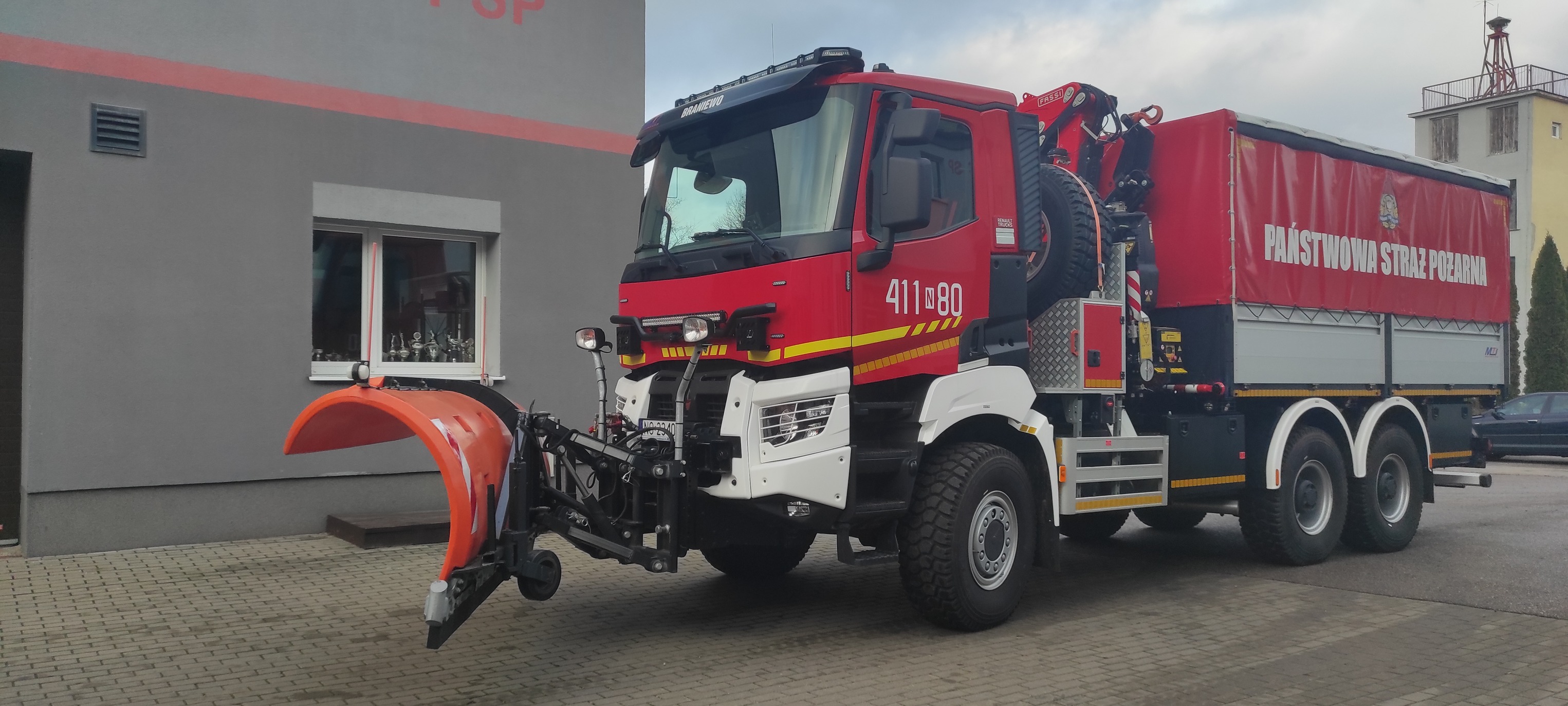 Pojazd specjalny wyposażony jest w armaturę do dostarczania wody na odległość 3000 metrów, żuraw hydrauliczny Fassi oraz wyciągarkę hydrauliczną. Dodatkowym wyposażeniem pojazdu jest pług, który montowany jest naprzemiennie w miejsce wyciągarki hydraulicznej. Napęd na wszystkie osie, automatyczna skrzynia biegów oraz wyposażenie może być gwarantem skuteczności realizowanych działań. Dodatkowo strażacy realizują doskonalenie zawodowe w zakresie obsługi nowego ciężkiego pojazdu ratowniczo – gaśniczego.