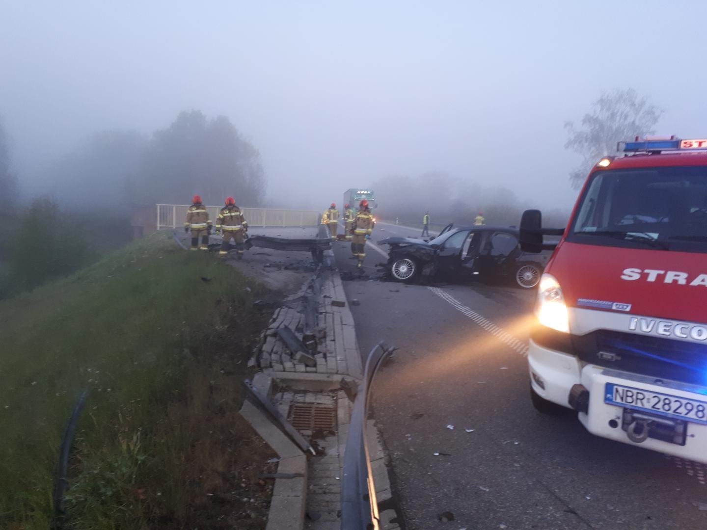 BMW uderzyło w bariery ochronne – poranny wypadek na S22.