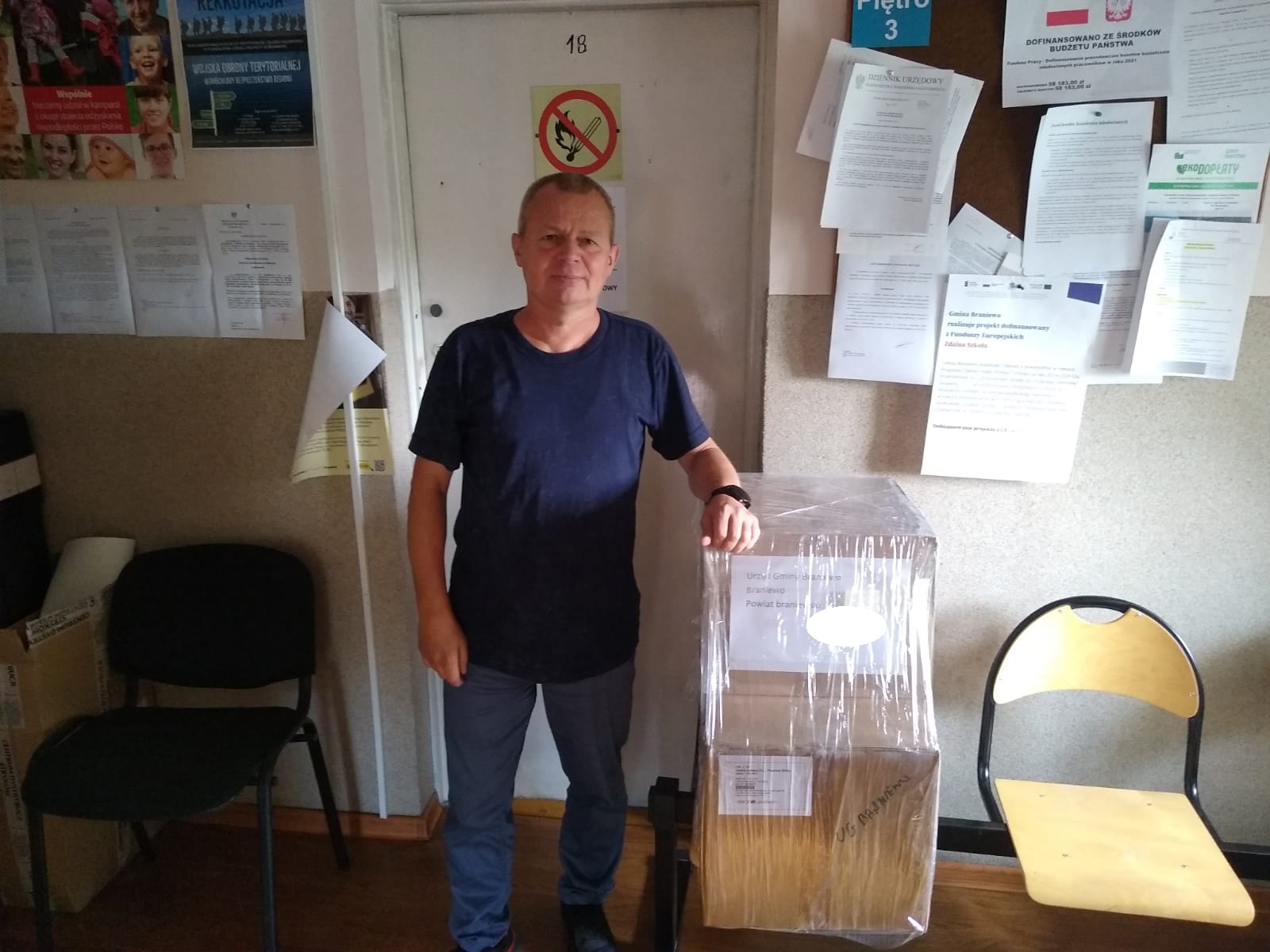 W piątek 30 września br. tabletki zostały w porozumieniu z przedstawicielami samorządów dostarczone i przekazane przez funkcjonariuszy Państwowej Straży Pożarnej w Braniewie do wskazanych punktów na terenie powiatu braniewskiego. W siedzibie Komendy Powiatowej Państwowej Straży Pożarnej w Braniewie Starosta Braniewski Karol Motyka oraz inspektor ds. bezpieczeństwa publicznego Marek Siejk rozmawiali o dystrybucji tabletek jodku potasu na obszarze powiatu.
