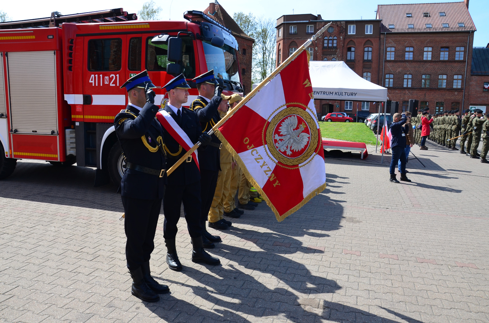 Punktualnie o godz. 12:00 strażacy z Komendy Powiatowej Państwowej Straży Pożarnej w Braniewie uczestniczyli w uroczystości na placu ks. prał. Tadeusza Brandysa, gdzie odbyło się uroczyste podniesienie flagi narodowej na maszt.
