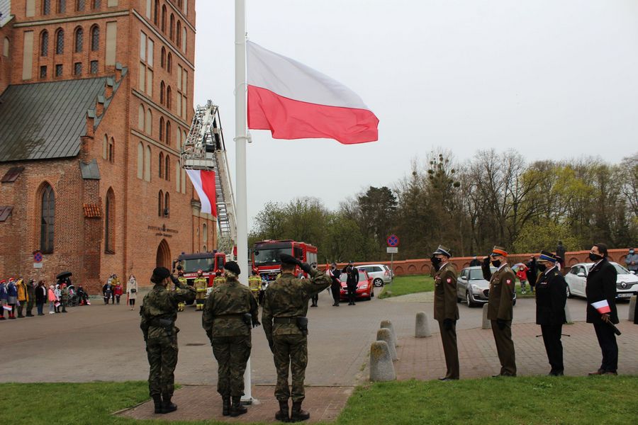 Tego samego dnia w połudne na placu ks. prał. Tadeusza Brandysa w pobliżu Bazyliki Mniejszej w Braniewie nastąpiło uroczyste podniesienie flagi Państwowej na masz. W okolicznościowej zbiórce uczestniczyli również strażacy z braniewskiej komendy, poczet sztandarowy, przedstawiciele służb mundurowych, samorządowcy oraz mieszkańcy miasta