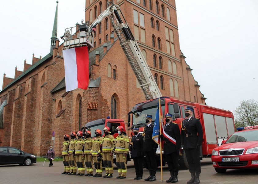 2 maja 2021 roku z okazji Dnia Flagi Rzeczypospolitej Polskiej, punktualnie o godz. 7:50 na placu wewnętrznym Jednostki Ratowniczo – Gaśniczej PSP w Braniewie, przeprowadzony został uroczysty apel. W uroczystym apelu uczestniczyły dwie zmiany służbowe. Po wprowadzeniu pocztu sztandarowego nastąpiło podniesienie flagi, zgodnie z ceremoniałem pożarniczym przy dźwiękach hymnu państwowego. W trakcie apelu Komendant Powiatowy PSP w Braniewie bryg. Ireneusz Ścibiorek odczytał krótkie wystąpienie nawiązujące do Dnia Flagi RP. W ten sposób strażacy z braniewskiej komendy PSP oddali w symboliczny sposób cześć „biało czerwonej”.